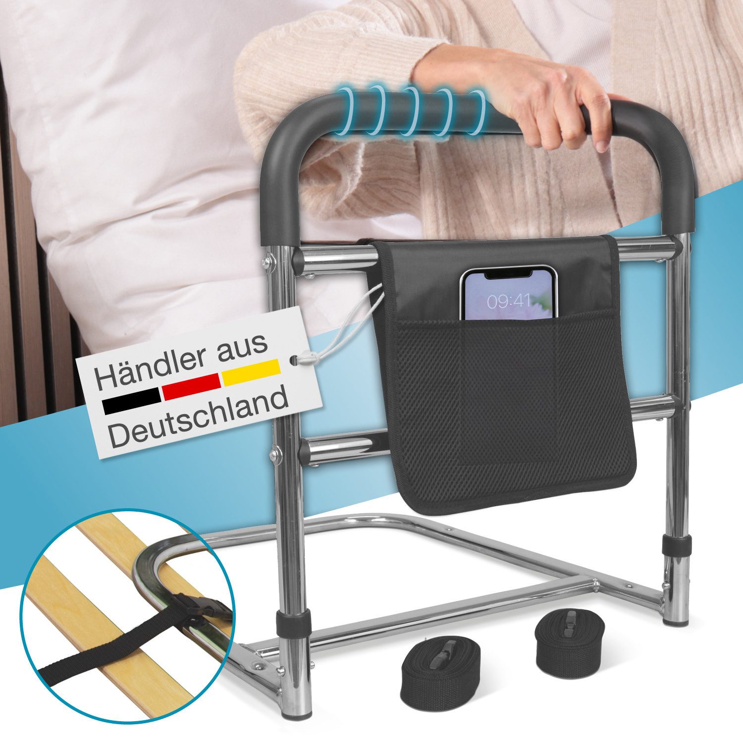 Diese Bettstehhilfe mit Tasche ist Ihr praktischer Begleiter für den Start in den Tag. Sie können sich an ihr aufrichten oder sich beim Hinlegen festhalten und haben zudem einen stabilen Rausfallschutz – ideal für Senioren und bei Bewegungseinschränkungen.