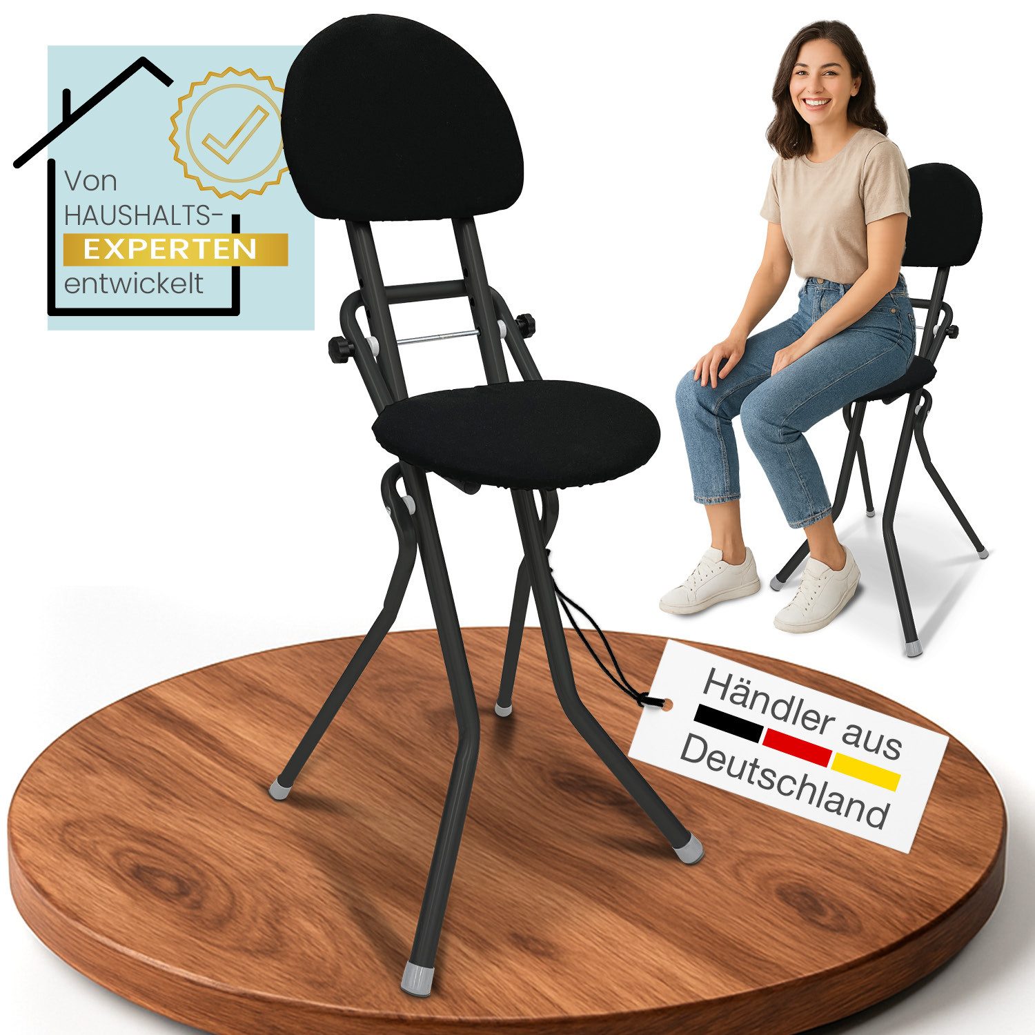 Eigenschaften | höhenverstellbar klappbar rutschfest platzsparend |