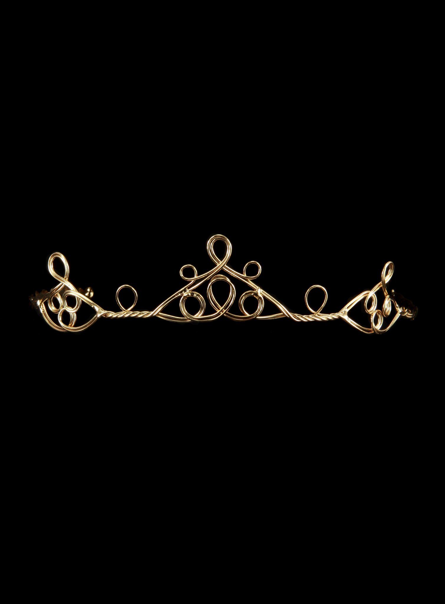 Weniger ist manchmal mehr: Dieses Jugendstil Diadem besticht durch seine schlichte Eleganz. Das goldene filigran gearbeiteten Schmuckstück krönt Euch mit zarten verschnörkelten Ornamentformen, lässt Euch aber nicht weniger in royalem Glanze erscheinen. Am Hinterkopf wird das Jugendstil Diadem mittels eines kleinen Karabiner-Kettenverschlusses geschlossen. Die Weite kann dabei individuell an Eure Kopfform angepasst werden. Dieses Diadem ist genau das richtige Accessoire zur Krönung einer jeden Königin, Prinzessin, Elfe oder Fee, die auf wuchtige Klunker verzichten und ihr Antlitz mit dezenter Raffinesse in Szene setzen möchten.