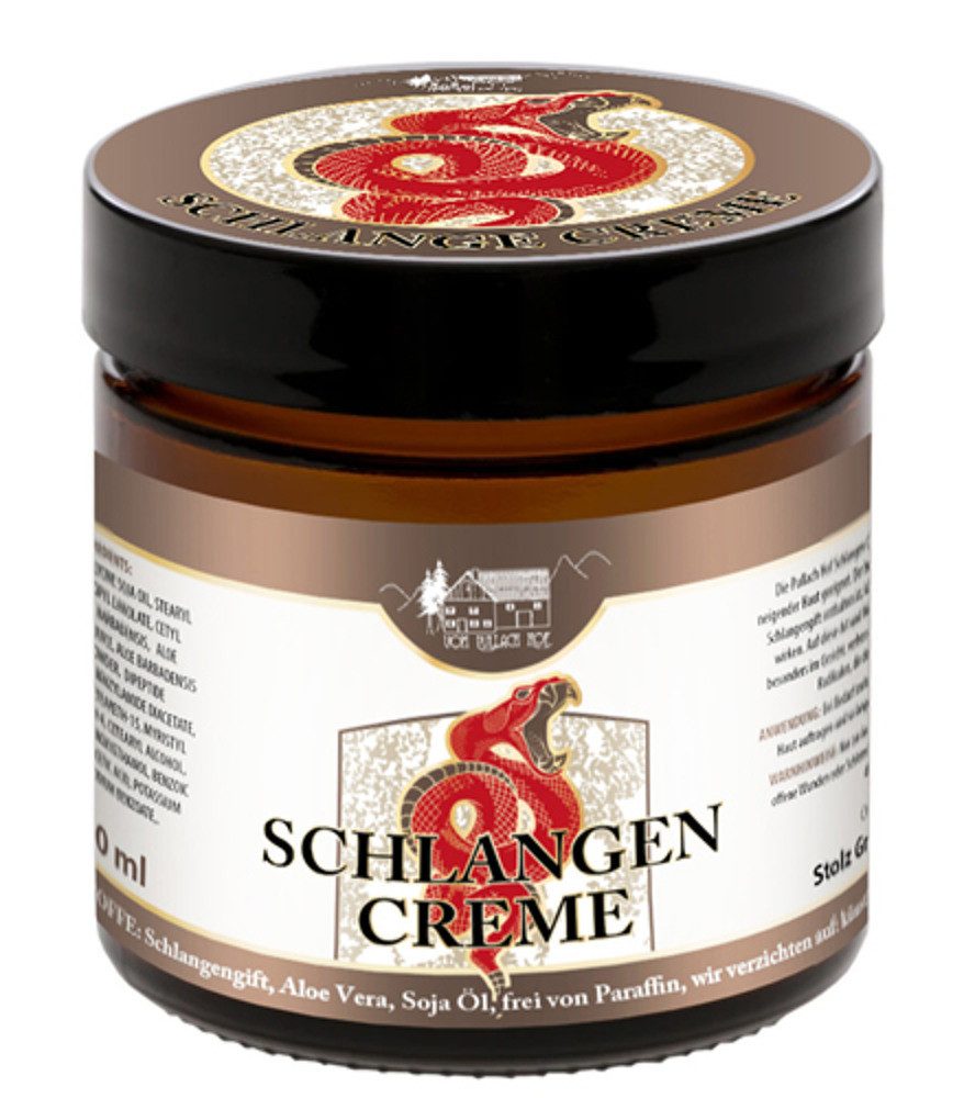 2 x 100 ml Schlangengift Schlangencreme Feuchtigkeits Hautpflege Salbe . Schlangencreme ist für altersbedingte zu Falten neigender Haut, besondere Wirkstoffe und körpereigene Eiweißbausteine können dem mechanischen Hautalterungsprozess entgegen wirken, können Falten glätten, können das Hautbild verbessern, ausserdem schützt das Schlangengift vor freien Radikalen Made in Germany. Inhaltstoffe: Aqua, Glycerin, Glycine Soja Oil, Stearyl Alcohol, Isopropyl Lanolate, Cetyl Alcohol, Aloe Barbadensis Leaf Juice, Aloe Barbadensis Leaf Juice Powder, Dipeptide Diaminobutyroyl Benzylamide Diacetate, Ceteareth-25, Ceteareth-15, Myristyl Alcohol, Myreth-4, Cetearyl Alcohol, Tocopherol, Phenoxyethanol, Benzoic Acid, Dehydroacetic Acid, Potassium Srobate, Sodium Benzoate. SICHERHEITSHINWEISE: - Nur für äußere Anwendung. - nicht in die Schleimhäute oder Augen bringen. - nicht für Kleinkinder geeignet: - Schwangere /Всіrgiker sollten vor der Anwendungen einen Arzt zur Beratung konsultieren: - Nicht geeignet für offene Wunden und Einschnitte. - Vor und nach der Anwendung Hände gründlich waschen: - Außerhalb der Reichweite von Kleinkindern aufbewahren.