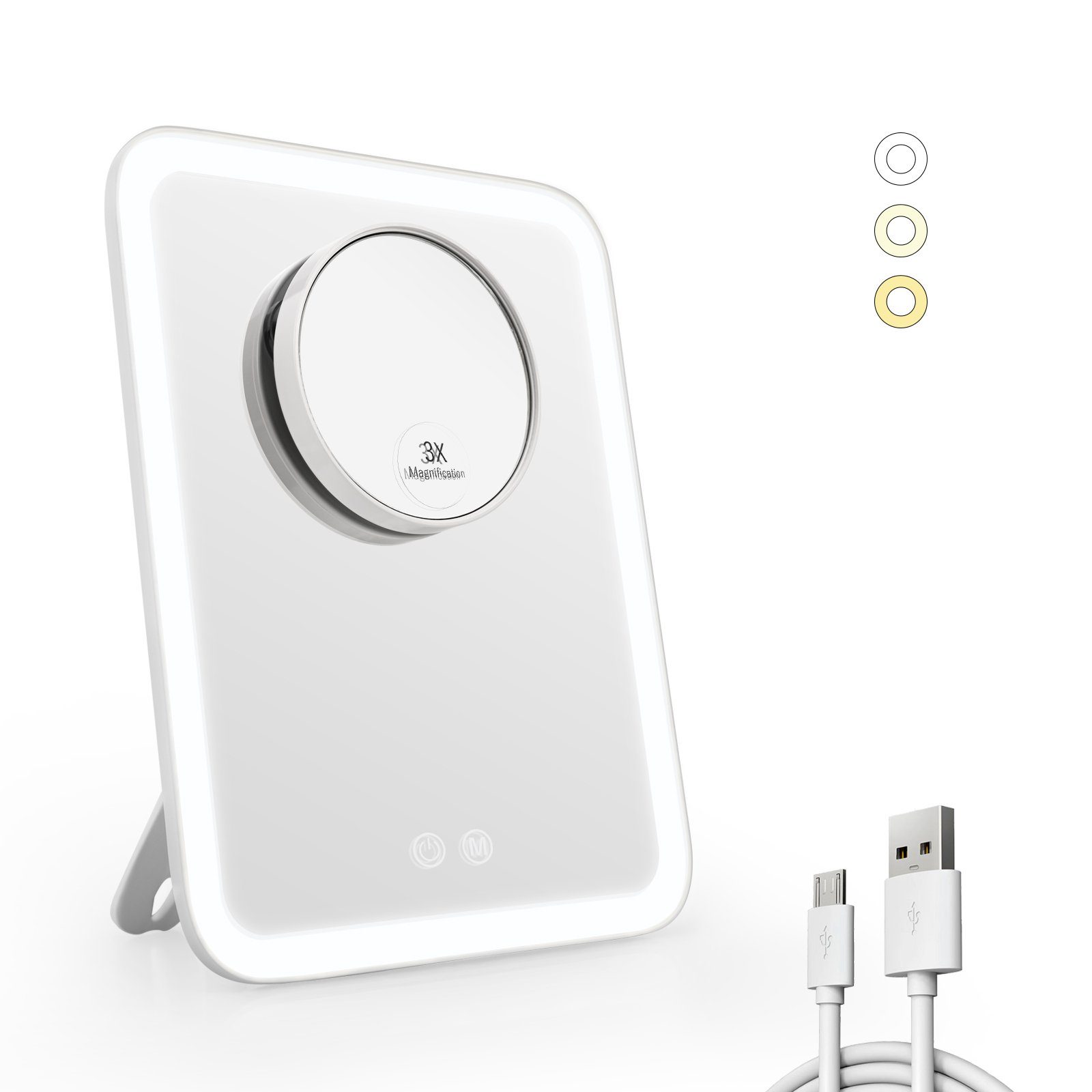 Die drei Lichtfarben lassen sich mit nur einem Fingertipp anpassen, um das ideale Make-up-Ergebnis für Tageslicht, Abendlicht oder warme Innenbeleuchtung zu simulieren. Dank der stufenlosen Helligkeitsregulierung per Touch-Steuerung passt sich die Beleuchtung Ihren individuellen Bedürfnissen an. Die integrierte Speicherfunktion sorgt dafür, dass Sie Ihre Lieblingseinstellung nicht jedes Mal neu wählen müssen.