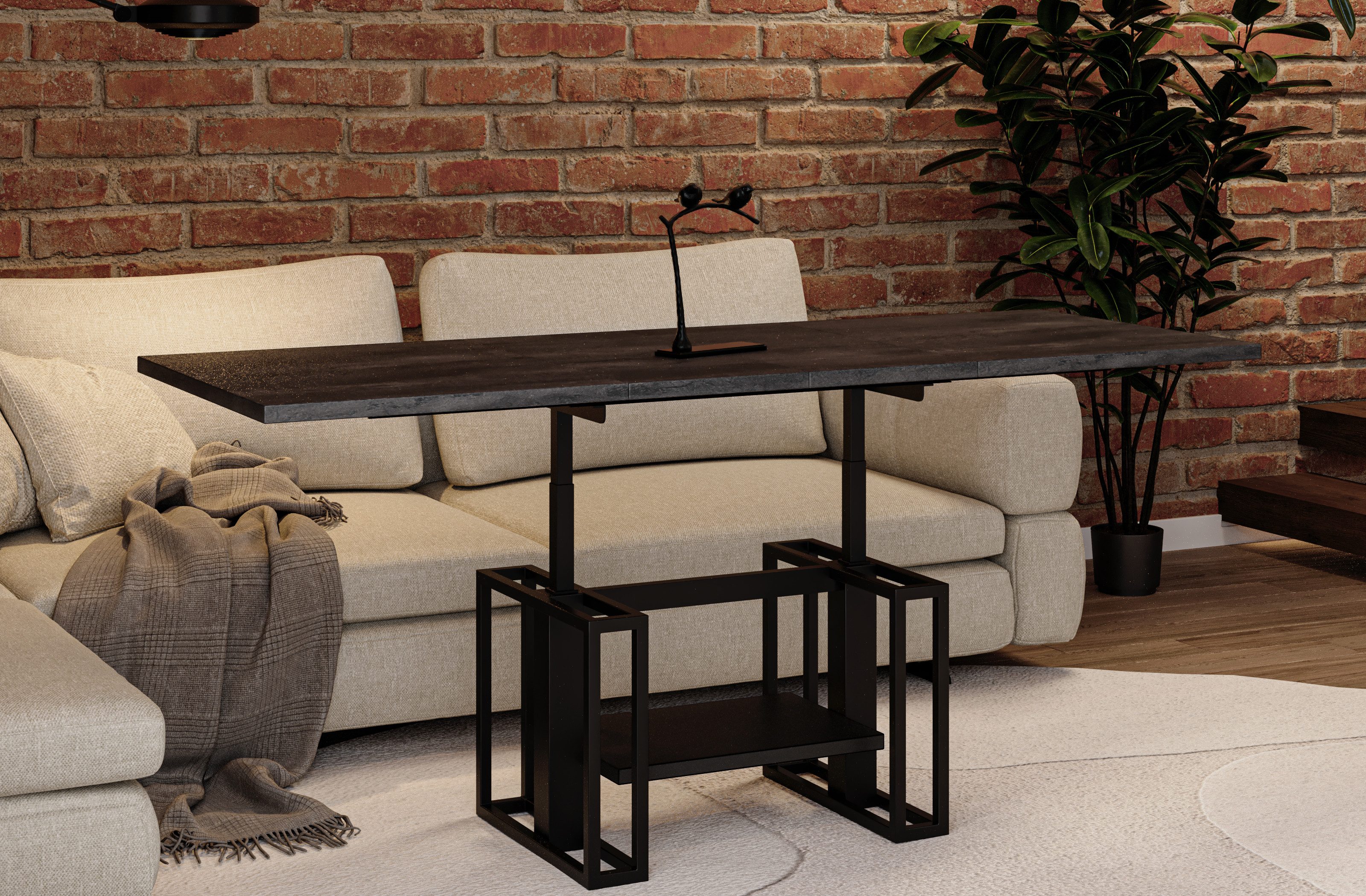 Vielseitig & platzsparend: Der Couchtisch „Victoria“ verwandelt sich mühelos vom gemütlichen Couchtisch zum vollwertigen Esstisch – perfekt für kleine wie große Wohnräume.
