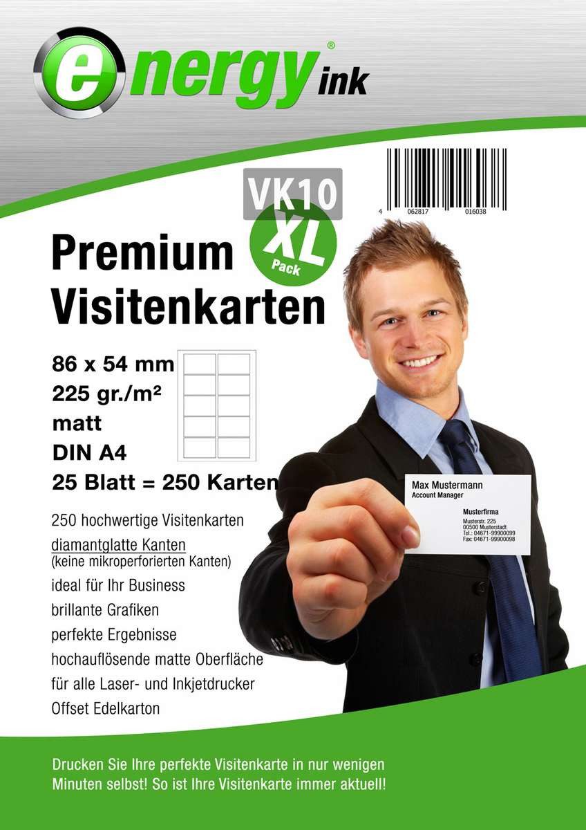 energy ink Premium Visitenkarten VK10XL matt - 25 Blatt A4 = 250 Visitenkarten