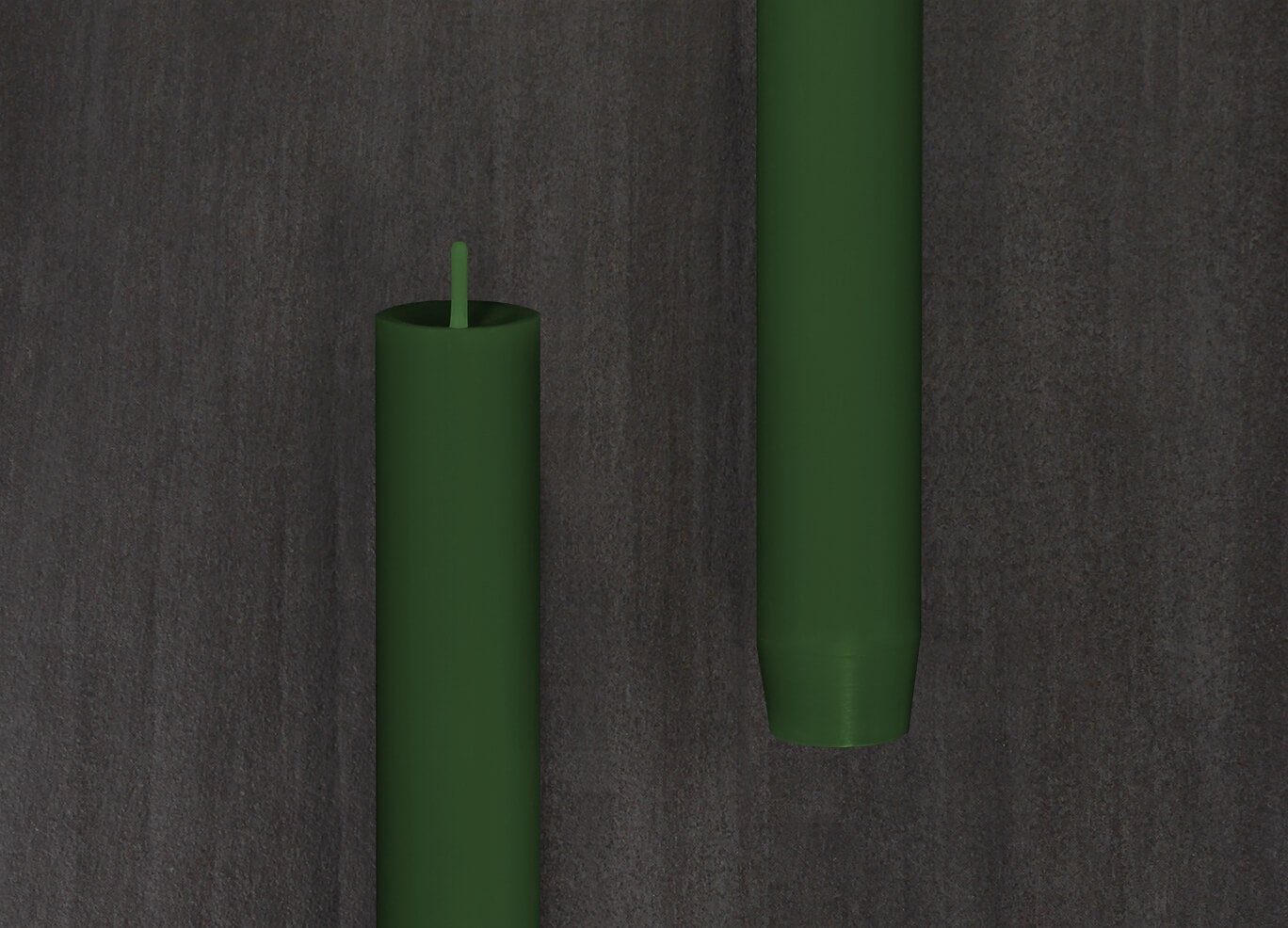 Bei der gegossenen, durchgefärbten Stabkerze von Engels verbindet sich Material, Form, Farbe und Oberflächengestaltung zu einer einzigartigen Qualität. Sowohl die gezogenen als auch die gegossenen Stabkerzen haben den berühmten "Engels-Kopf". Praktisch der Fuß in konischer oder Zapfenform. Er ermöglicht das Einsetzen der Kerze in Leuchter verschiedener Größe.
