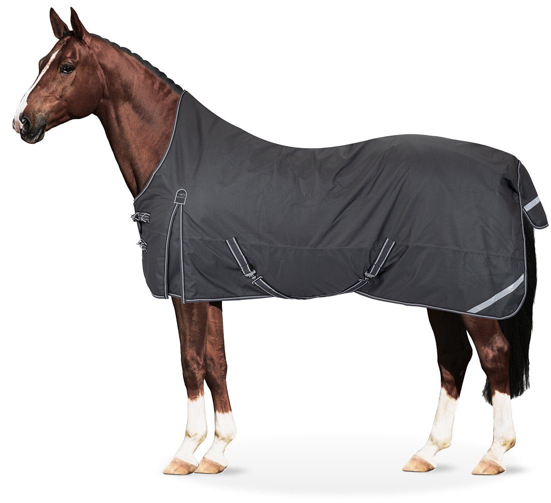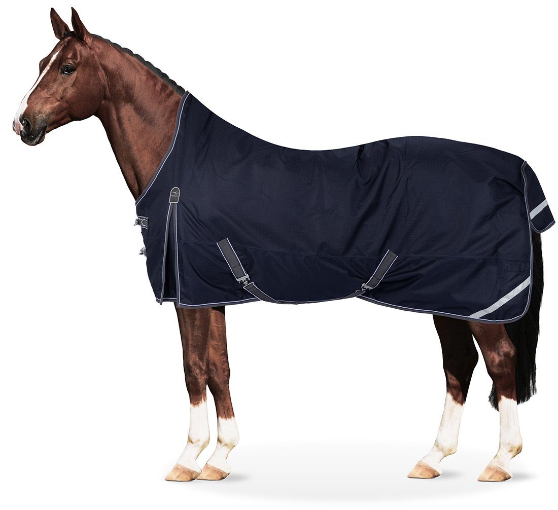 Die Regendecke Oakland mit Vorderbeinausschnitten bietet Ihrem Pferd viel Bewegungsfreiheit und Komfort in der Übergangszeit. Sie ist sowohl mit einem äußerst strapazierfähigen, wasserdichten sowie atmungsaktiven 1200 Denier Ripstop-Außenmaterial als auch mit weichen Fleeceinnenfutter ausgestattet. Durch den Equinate typischen Deckenschnitt, zwei Brustschnallen, Kreuzbegurtung mit Elastikeinsatz, Schweifriemen und Schweiflatz ist ein rutschfester Sitz garantiert. Zudem sorgt der nahtlose, nach vorn gezogene Schnitt am Widerrist für Extra viel Witterungsschutz und optimiert die Druckverteilung auf diesen empfindlichen Bereich. Verstellbare und abnehmbare Beinschnüre sind ebenso wichtige Merkmale. Die Sichtbarkeit in der Dämmerung und bei Nacht werden durch Sicherheitsreflektoren verbessert.