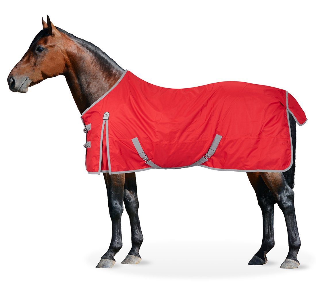 Die Regendecke Springfield mit Vorderbeinausschnitten bietet Ihrem Pferd viel Bewegungsfreiheit und Komfort in der Übergangszeit. Sie ist sowohl mit einem äußerst strapazierfähigen, wasserdichten sowie atmungsaktiven 600 Denier Ripstop-Außenmaterial als auch mit weichem Fleeceinnenfutter ausgestattet. Durch den klassischen Equinate-Deckenschnitt, zwei Brustschnallen, die Kreuzbegurtung mit Elastikeinsatz, Schweifriemen und Schweiflatz ist ein rutschfester Sitz garantiert. Verstellbare und abnehmbare Beinschnüre sind ebenso wichtige Merkmale. Das umlaufende Einfassband in Kombination mit den gravierten T-Verschlüssen verleihen der Decke den letzten Schliff.