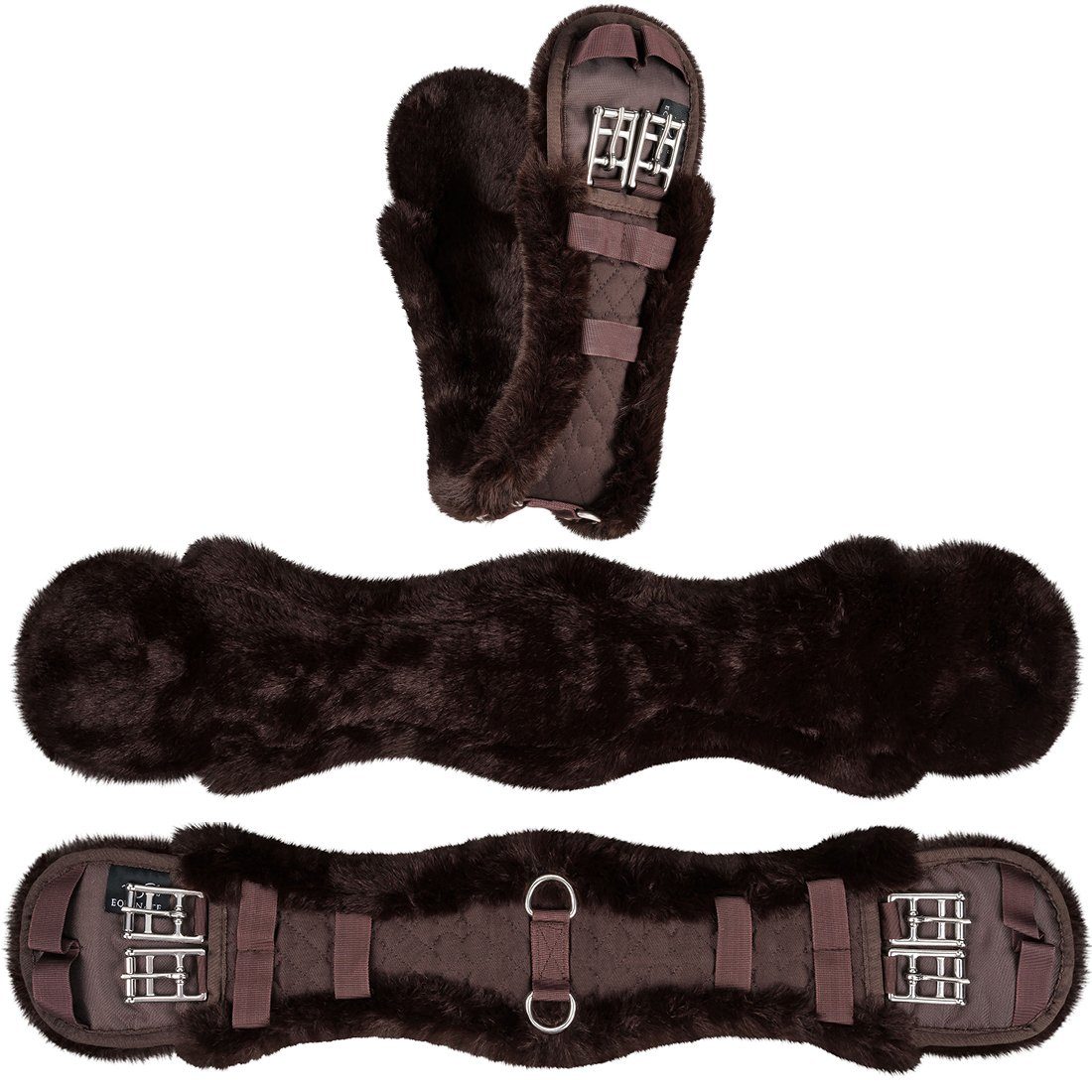 Equinate Sattelgurte zeichnen sich durch einen besonders hohen Tragekomfort und ihre individuellen Materialeigenschaften aus. Sie werden grundsätzlich mit 100 % rostfreien Beschlägen ausgestattet. Die anatomische Formgebung sorgt für eine optimale Druckverteilung und maximale Bewegungsfreiheit im Bereich der Vorhand. Zusätzlich schützt der Fellrand vor Scheuerstellen. Die nicht elastischen Gurtriemen aus Polyester halten hohen Belastungen stand und weisen eine äußerst hohe Zugfestigkeit auf.