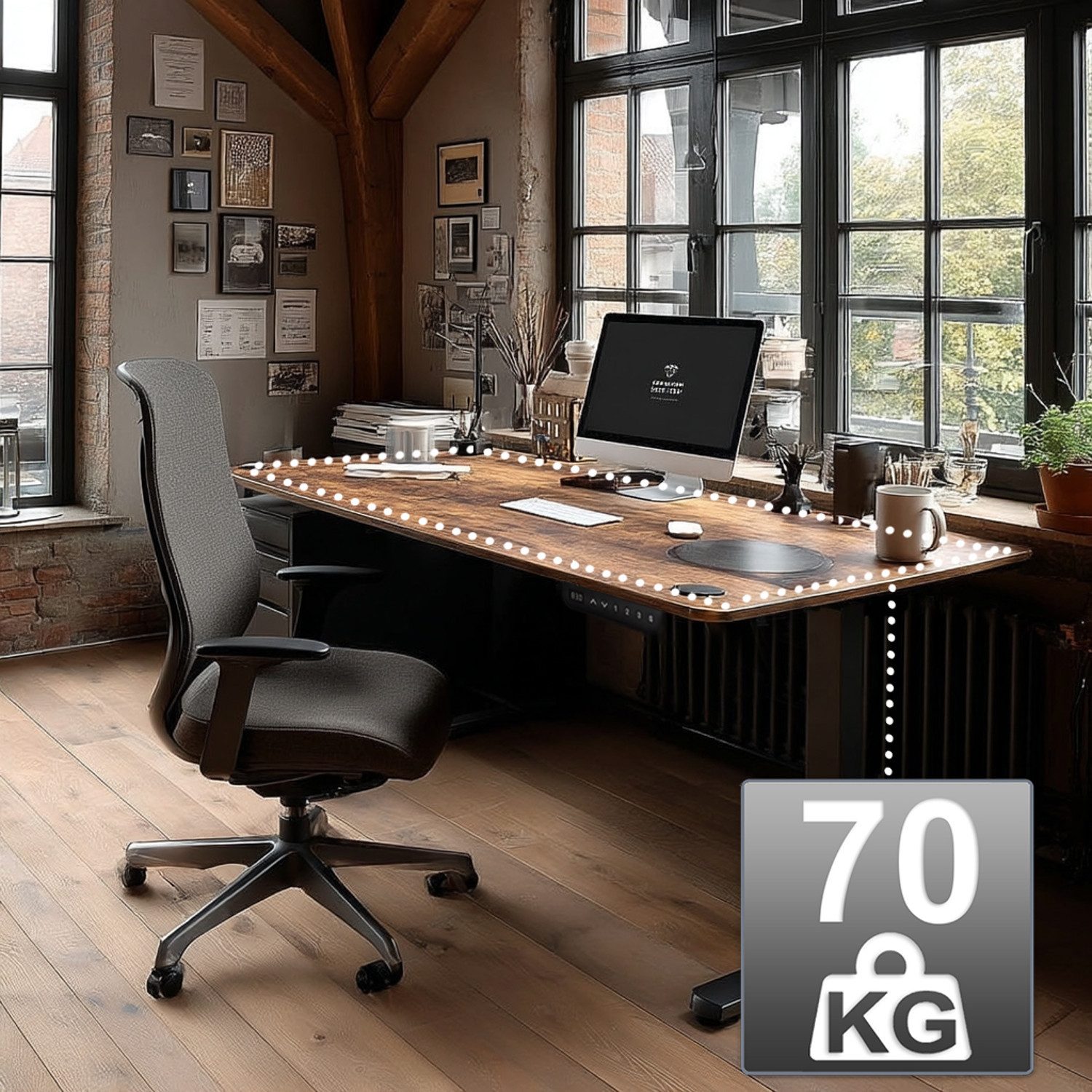 Die Memory-Funktion ermöglicht es Ihnen, 3 verschiedene Höhenpositionen zu speichern. Mit dieser Option sparen Sie Zeit und können mit nur einem Knopfdruck die aktuelle Höhe der Tischplatte in Ihre Lieblingspositionen ändern. Das Kollisionsvermeidungssystem stoppt den Prozess des Absenkens oder Anhebens der Tischplatte, wenn Sie auf ein Hindernis stoßen. Stabile und robuste Konstruktion sorgt für eine sichere und langlebige Nutzung. Der Schreibtisch kann sowohl zu Hause als auch im Büro verwendet werden.