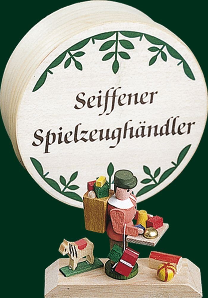 Spanschachtel Spielzeughändler Wunderschön und aus dünnem Weichholz besteht diese tolle Spandose. Sie ist befüllt mit einem kleinen Spielzeughändler der farbig gestaltet sind. Auf dem Deckel ist ein Siebdruckbild. Всіs wird in verschiedenen Schritten direkt in Seiffen gefertigt. Höhe= 7,5cm NEU |