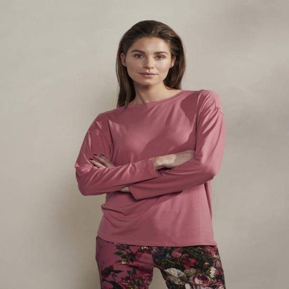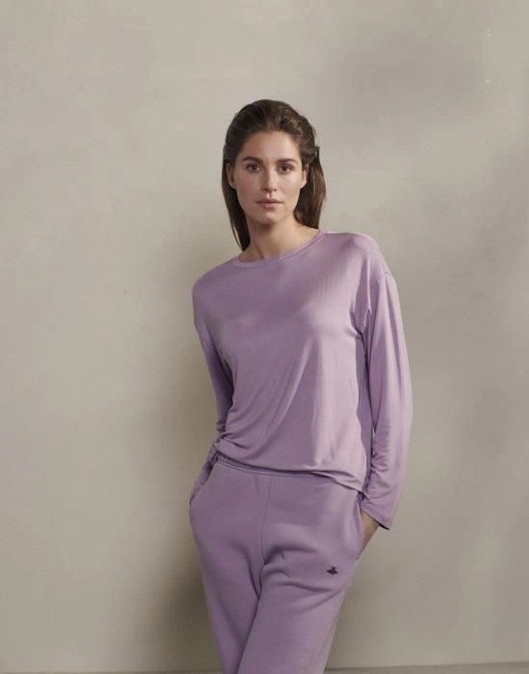 Ob zum Schlafen oder als lässiges Everyday-Top – das Modell Denna Uni von ESSENZA begeistert mit Vielseitigkeit und Komfort. Der lockere Schnitt, die langen, geraden Ärmel und der hohe Rundhalsausschnitt sorgen für ein angenehmes Tragegefühl – Tag und Nacht. In leuchtendem Violet Purple wird das Basic zum stilvollen Hingucker – ob auf dem Sofa, im Bett oder kombiniert zur Jeans.