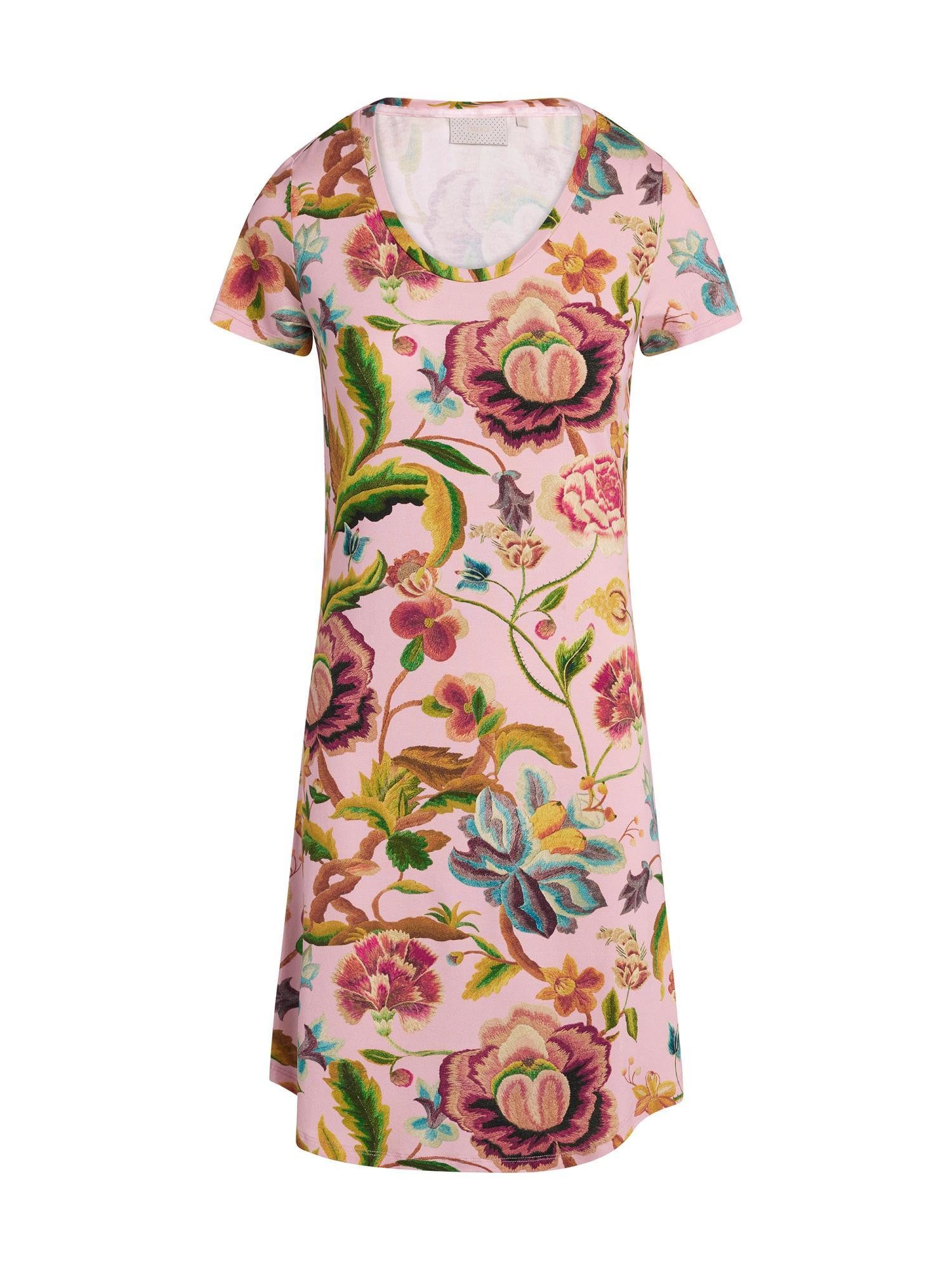 Der bezaubernde Rosalina-Print, inspiriert von 18. Jahrhundert bestickter Seide aus dem Rijksmuseum, strahlt Romantik aus. Auf verschiedenen farbigen Hintergründen entfalten sich Blumen in lebhaften Schattierungen von Blau, strahlendem Rot und warmem Gelb mit feinen Details. Grüne Blätter weben sich anmutig durch die Komposition und bieten einen frischen Kontrast. Jedes Blumenmotiv, sorgfältig aus verschiedenen Stücken zusammengestellt, bildet ein harmonisches und elegantes Ganzes, in dem Geschichte und Schönheit zusammenkommen. Mit einem Rundhalsausschnitt, kurzen Ärmeln und einer leicht sitzenden A-Linien-Passform wurde das Isa-Nachthemd entwickelt, um leicht und luftig zu tragen zu sein. Die verspielte Довжина, die oberhalb des Knies endet, macht es ideal für eine entspannte Nacht oder einen ruhigen Morgen. Dieser Stoff besteht aus EcoVero-Viskose und Elasthan. EcoVero-Viskose ist bekannt für ihre Weichheit und ihren seidigen Glanz, der eine edle Optik verleiht. Es handelt sich um eine nachhaltige Варіанти der Viskose, die aus zertifizierten erneuerbaren Holzquellen gewonnen und mit geringerem Umwelteinfluss produziert wird. Der Zusatz von Elasthan verleiht dem Material zusätzliche Elastizität, wodurch es sich angenehm an den Körper anschmiegt und komfortabel mit jeder Bewegung mitgeht.