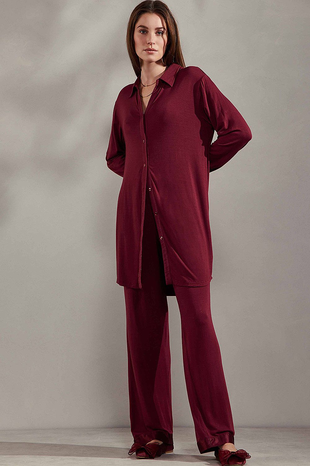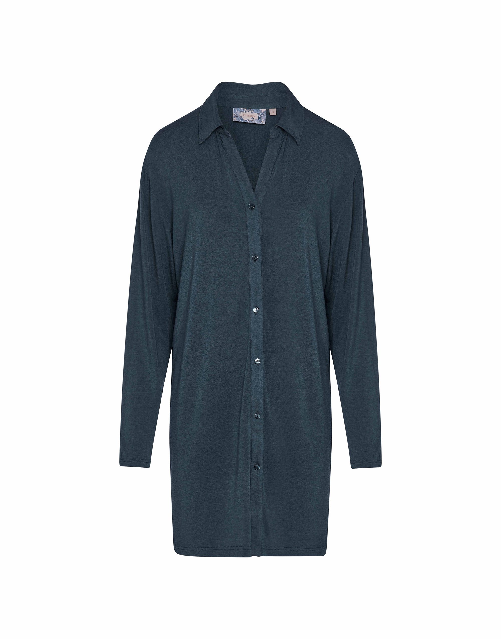 Das Valentina-Nachthemd hat eine locker sitzende Passform und fällt angenehm oversized. Das abgesenkte Schulterdesign verleiht dem Nachthemd eine moderne und entspannte Ausstrahlung. Es bietet ausreichend Bewegungsfreiheit und sorgt für eine mühelose und komfortable Passform. Der spitze Kragen, inspiriert vom klassischen Hemd, setzt dem Design einen Hauch von Raffinesse auf. Dieser elegante Kragen verleiht dem Nachthemd eine subtile, aber stilvolle Note – ideal für Frauen, die auch in ihrer Nachtwäsche einen Hauch von Chic ausstrahlen möchten. Der Stoff besteht aus dem natürlichen Material Modal, kombiniert mit Elasthan. Modal wird aus Buchenholzpulp hergestellt und zeichnet sich durch seine weiche Beschaffenheit aus, die es zur perfekten Wahl für Pyjamas und Homewear macht. Modal ist ein angenehm zu tragendes, geschmeidiges Material, das den Körper sanft umschmeichelt. Der Uni-Print besticht durch seine beruhigende Schlichtheit. Ohne Muster oder Ablenkung stehen reine Farbe und Klarheit im Fokus. Dieses zurückhaltende Design strahlt zeitlose Eleganz aus und lässt sich mühelos mit ausdrucksstärkeren Teilen kombinieren – perfekt für Liebhaber minimalistischen Designs und ruhiger Ästhetik.