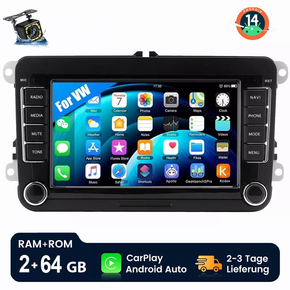 7 Zoll Android Autoradio für VW GOLF: Dieses Bluetooth Autoradio ist geeignet für VW/PASSAT/GOLF/SEAT/SKODA/POLO. Das Android Autoradio mit kapazitivem 7 Zoll IPS Touchscreen, 2 GB RAM und 64 GB ROM bietet Ihnen genug Platz zum Download Ihrer Lieblings-Apps und -Videos, damit das Autofahren nicht mehr langweilig wird. Mit zwei USB-Anschlüssen unterstützt es das schnelle Aufladen von Mobiltelefonen.