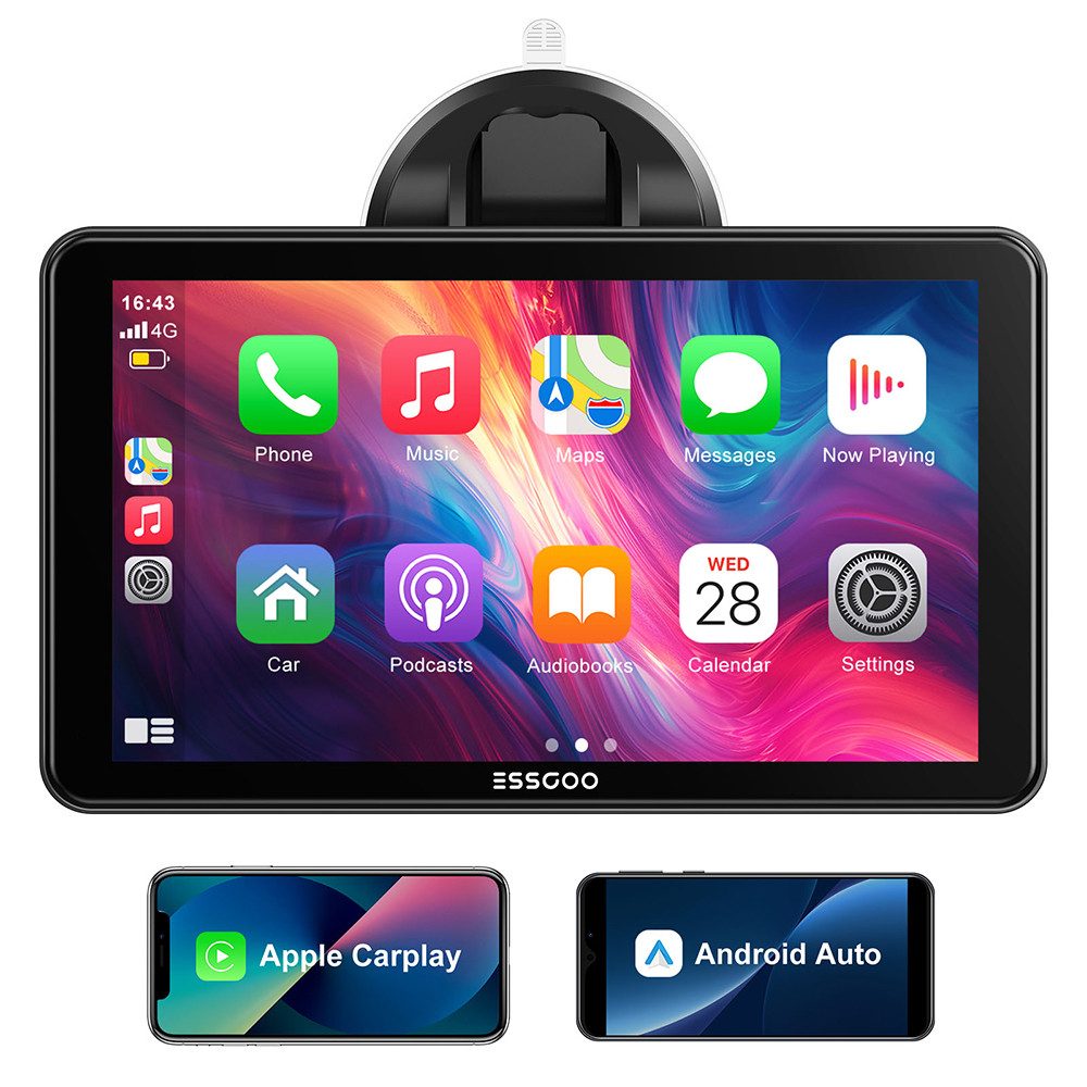 ESSGOO 7-Zoll CarPlay Display Kabelloses Apple Carplay & Android Auto Navigationsgerät (Autoradio Bluetooth Sprachsteuerung)