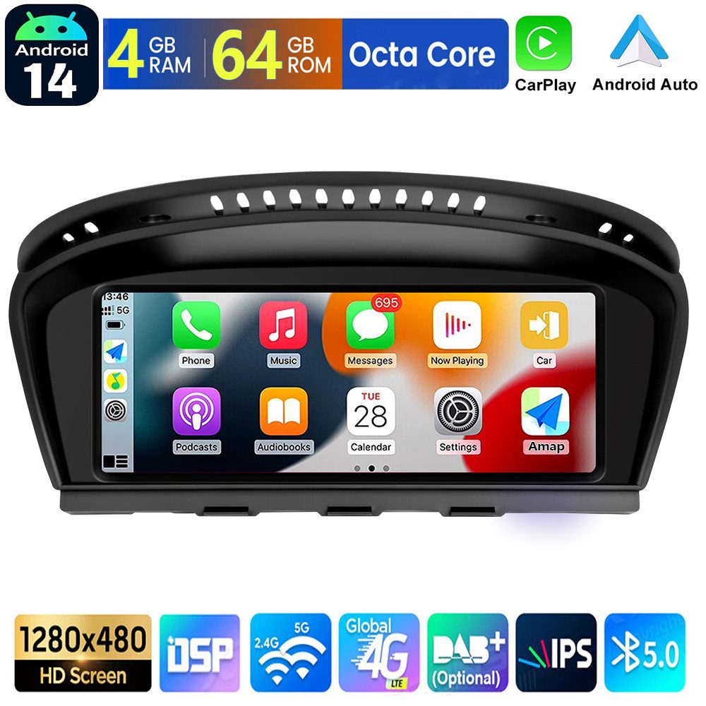 8,8 Zoll Android 14 Autoradio für BMW E60 E90 mit CCC System: Das Radio ist mit dem neuesten Android 14 Betriebssystem ausgestattet, das mit 4GB RAM + 64GB ROM/6GB RAM + 128GB ROM integriert ist, so dass Sie schnellere, reibungslosere und intelligentere Navigationsanwendungen erleben können.