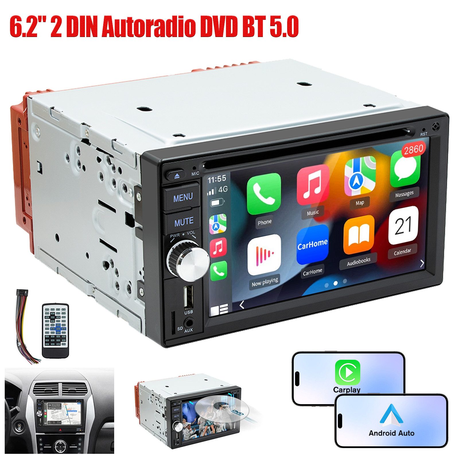 Apple Carplay & Android Auto: 6,2-Zoll-Doppel-DIN-Autoradio, kompatibel mit Carplay und Android Auto. Sie verbinden einfach Ihr Mobiltelefon mit einem USB-Kabel, das es Ihnen ermöglicht, GPS-Navigation, Anrufe/Nachrichten entgegenzunehmen, Musik abzuspielen und FM/AM-Radio usw. auf diesem Doppel-DIN-Autoradio mit Bluetooth zu nutzen.