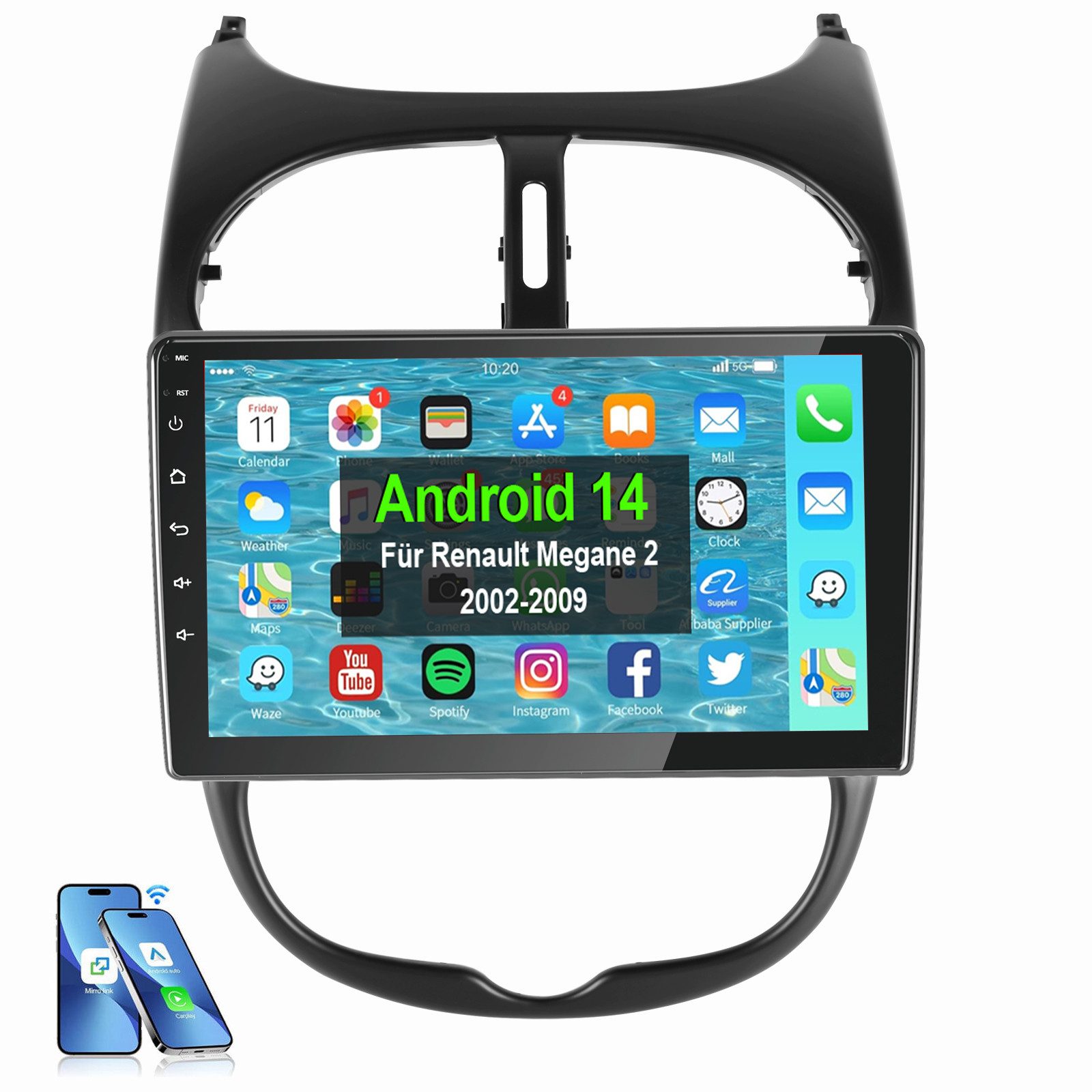9 Zoll Android 14 Autoradio für Peugeot 206 : Das Android Autoradio mit 9" 1280*720 HD kapazitivem Touchscreen, 1/2/4GB RAM und 32/64GB ROM ermöglicht das Herunterladen Ihrer Lieblings-Apps und -Videos, damit das Autofahren nicht mehr langweilig wird. Kein zusätzlicher Rahmen, kein Kabelwechsel, Plug and Play.