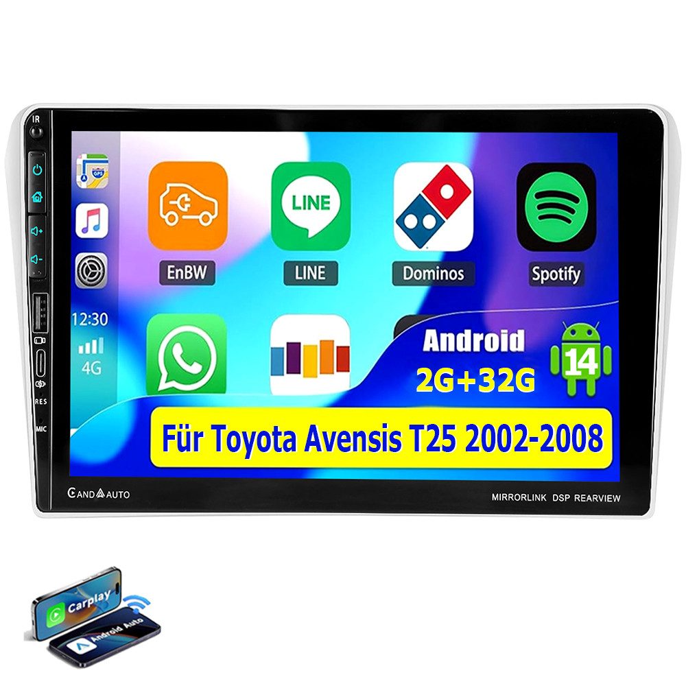 9 Zoll Android 14 Autoradio Für Toyota Avensis 2002-2008: Das Android Autoradio mit 9" 1280* 720 IPS kapazitivem Touchscreen, 2 GB (RAM) + 32 GB (ROM)/2 GB (RAM) + 64 GB (ROM) /4 GB (RAM) + 64 GB (ROM) ermöglicht das Herunterladen Ihrer Lieblings-Apps und -Videos, damit das Autofahren nicht mehr langweilig wird. Kein zusätzlicher Rahmen, kein Kabelwechsel, Plug and Play.