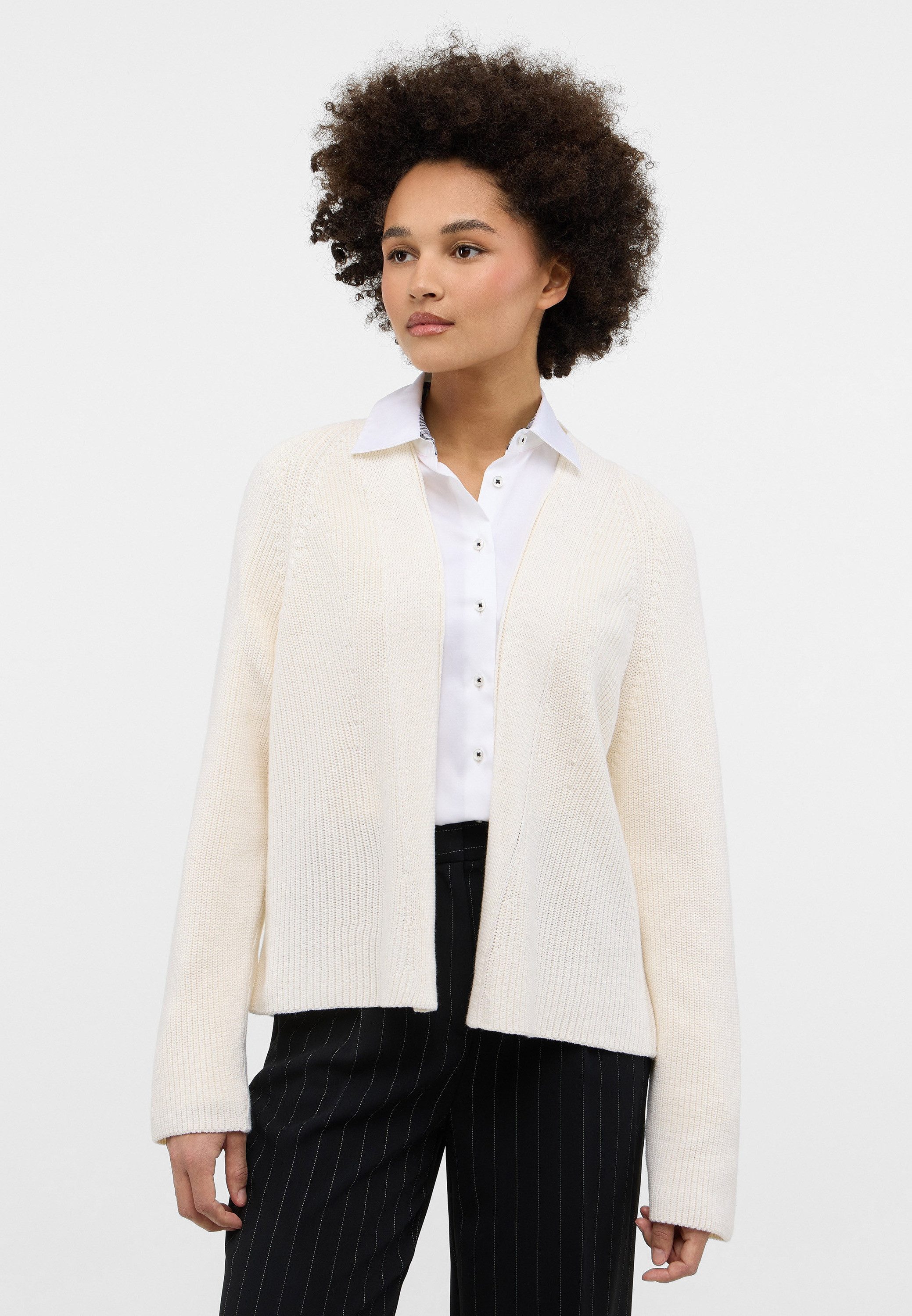 Diesen kuscheligen Damen-Cardigan, aus unserer Premiumlinie "1863 by ETERNA", können Sie zu den unterschiedlichsten Gelegenheiten tragen.