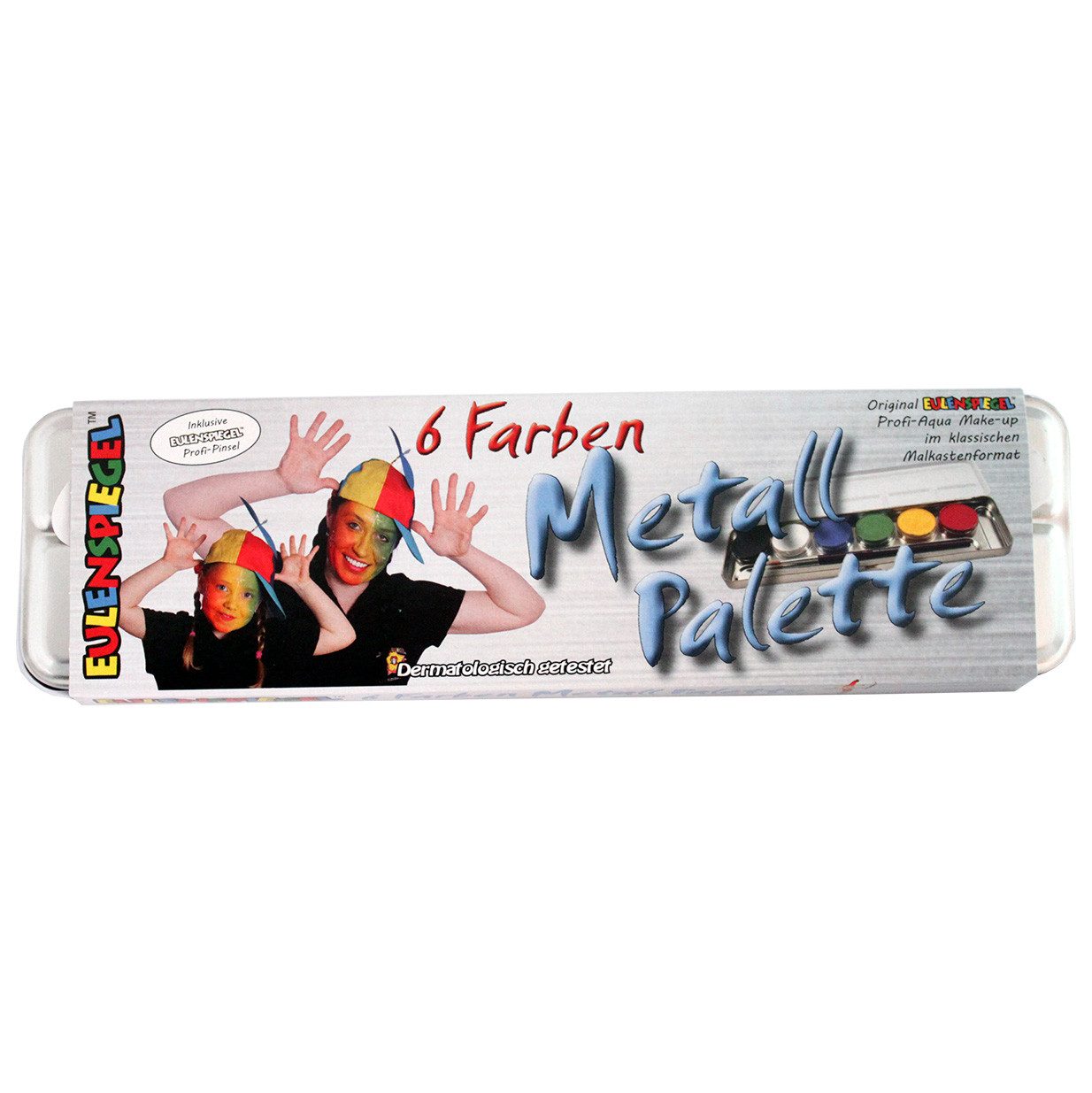 Eulenspiegel 6 Profi Aqua Farben Metall-Palette – Kompakte Schminkkraft im edlen Metalletui Die Eulenspiegel Profi-Aqua Schminkfarben-Palette im praktischen Metalletui bietet dir alles, was du für kreative Gesichtsbemalung und Körperkunst brauchst – kompakt, hochwertig und sofort einsatzbereit! Enthalten sind 6 brillante Aqua-Farben à 3,5 ml sowie 1 Profi-Pinsel, ideal für Einsteiger, Hobby-Künstler:innen und Profis. Ob zu Karneval, Fasching, Theater, Kinderfesten oder Fotoshootings – mit Farben wie Schwarz, Weiß, Himmelblau, Smaragdgrün, Gelb und Hellrot lassen sich unzählige Looks und Charaktere gestalten. Die Schminke ist auf Wasserbasis, vegan, hautfreundlich und leicht entfernbar – perfekt für große und kleine Künstler:innen! Made in Germany – für höchste Qualität und Sicherheit: Всі Farben sind dermatologisch getestet, glutenfrei, ohne tierische Inhaltsstoffe und frei von Nussölen – ideal auch für empfindliche Haut. Produktvorteile auf einen Blick: 6 intensive Farben mit hoher Deckkraft für kreative Schminkideen Wasserlöslich, hautfreundlich & einfach zu entfernen Vegan, nussölfrei & dermatologisch getestet – ideal für Kinder & Erwachsene Inklusive Profi-Pinsel – direkt startklar für jede Anwendung Edles, langlebiges Metalletui – perfekt für Transport & Aufbewahrung Diese Palette ist ein echtes Must-have für alle, die schnell und unkompliziert in die Welt der Schminkkunst eintauchen wollen. Ob für Fasching, Theater oder Kinderschminken – mit dieser handlichen Profi-Palette bist du für jeden Anlass perfekt ausgestattet!