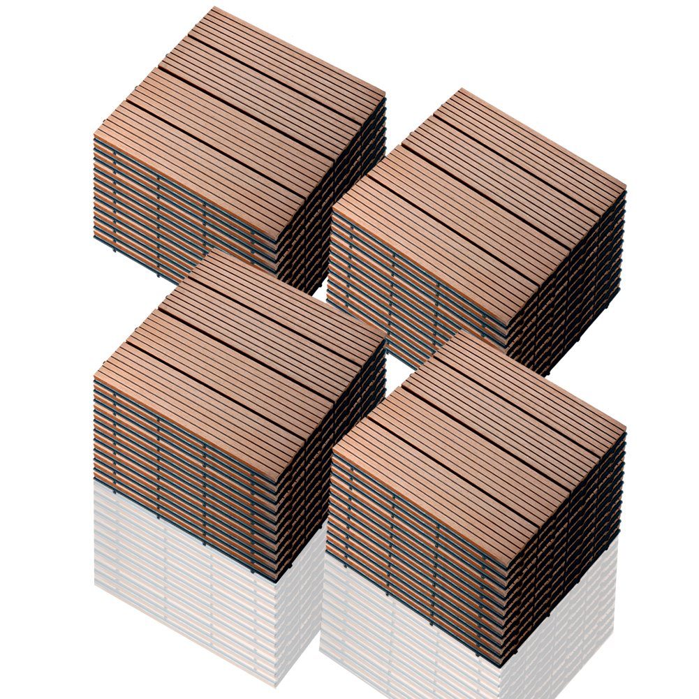Sie verfügen über eine Schnellverriegelungsfunktion, die einfach und werkzeuglos funktioniert. Hergestellt aus hochwertigem Holz-Kunststoff-Verbund, sind unsere Fliesen wasserabweisend und sehr langlebig.