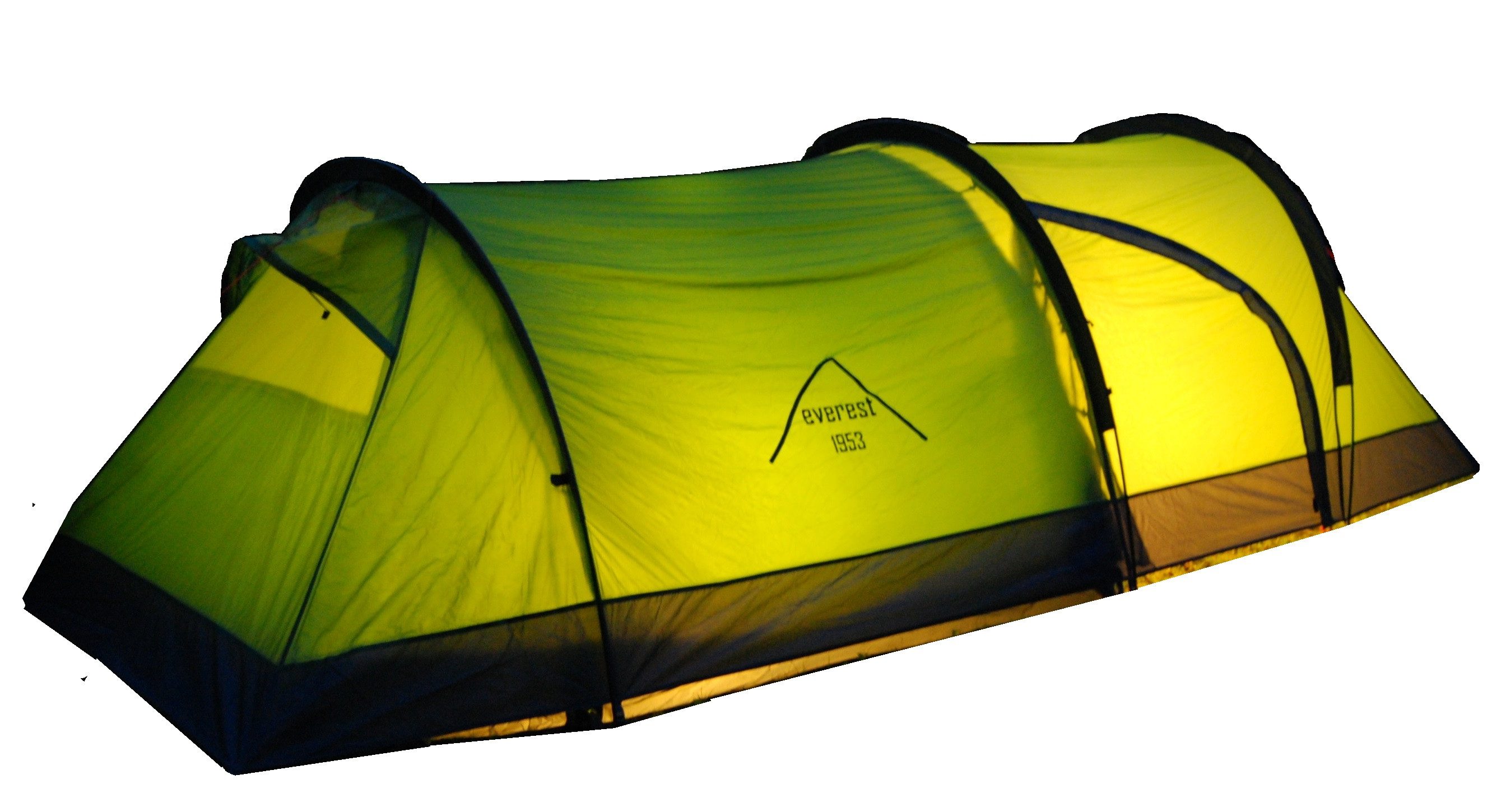 HighTech-Zelt mit besten Materialien für alle 4 Jahreszeiten geeignet Maipo 2,5 Personenzelt Farbe: grün Typ: Tunnelzelt Maße: Liegefläche 210 cm lang und 170 cm breit Gesamtlänge Zelt: 400 cm Wassersäule Außenzelt > 10.000 mm Wassersäule Boden 8.000 mm Außenmaterial: 260T, 40D Ultra Slim Nylon, extrem robustes Material (nicht zerreißbar) und dennoch leicht silikonbeschichtet - silicone wheater protector Innenmaterial: 190 T Atmungsaktives Polyester Innenzelt ist am Außenzelt eingehangen, Zeltstangen Außen ermöglicht sicheres Aufbauen auch im Regen. Innenzelt bleibt so trocken. unterklebte Nähte Gewicht: 3850 Gramm inkl. Tasche, Stangen und Heringe Packmaß: 57 x 15 cm Alu-Stangen: T6 3 Stück Duraluminium (gehärtetes Aluminium) Eingänge: 2 große Eingänge, der Seiteneingang zusätzlich mit Mosquito-Schutz (Reißverschluß überlappt - Schutz gegen Wind und Regen), das Innenzelt hat ebenfalls einen Mosquito-Schutz Heringe: Y-Alu-Pegs mit Schnurschlaufen, extrem stabil auch auf harten Boden, stabiler Stand auch bei starken Winden inkl. Kompressions-Packsack, 6 Abspannseile Das Innenzelt ist ausgestattet mit einer Tasche und einem Haken an der Decke für die Anbringung einer Lampe. Hinweis zur besonderen Beschichtung dieses Zeltes: Die derzeit beste Wahl ist ein silikonbeschichtetes Zelt. Achtung: Silikonisierung ist nur eine Imprägnierung. Silikonbeschichtet und silikonisiert ist demnach ein großer Unterschied. everest1953-Zelte sind silikonbeschichtet! Silikonbeschichtete Zelte, das bedeutet hohe Reißfestigkeit, hoher UV-Schutz und durch das Silikon dauerhaft elastisch. Der wesentlichste Vorteil: Extreme Wasserundurchlässigkeit. Bei silikonbeschichteten Zelten spielt die Angabe von Wassersäulen quasi keine Rolle mehr. Der Abperleffekt ist bei Silikonzelten sehr hoch. Dadurch hat das Material auf der Innenzelte keinen Kontakt zum Wasser. D.h. es wird überhaupt kein Wasserdruck aufgebaut und deshalb sind silikonbeschichtete Zelte im Wettkampf um die Wassersäule der klare Sieger. Nachteil: deutlich teurer in der Herstellung.