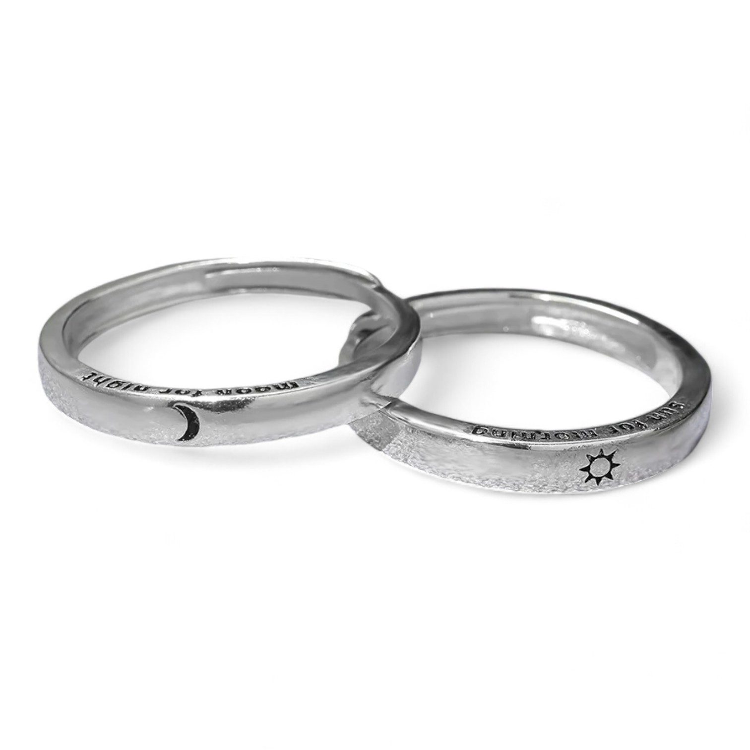 Ihr erhaltet 2 Ringe. Einen Ring mit Mond und ein Ring mit einer Sonnen Gravur.