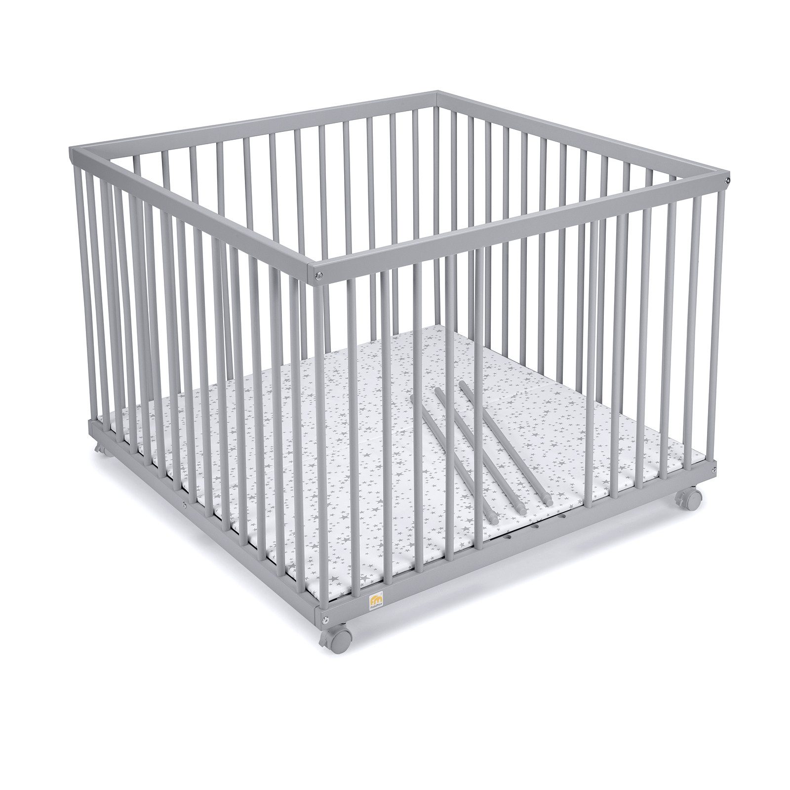 Unser Laufgitter bietet durch seine stufenlose Höhenverstellbarkeit und den gepolsterten, abwischbaren Boden ein Höchstmaß an Flexibilität und Pflegeleichtigkeit. Die integrierten 3 Schlupfsprossen ermöglichen Ihrem Kind einen einfachen Ein- und Ausstieg, während die 4 arretierbaren Parkettrollen einen sicheren Stand auf jedem Untergrund garantieren. Mit den Maßen 100x100x74 cm und einem Innenmaß des Bodens von 96x96 cm ist dieses Laufgitter ein großzügiger Spiel- und Ruheplatz für Ihr Kind.