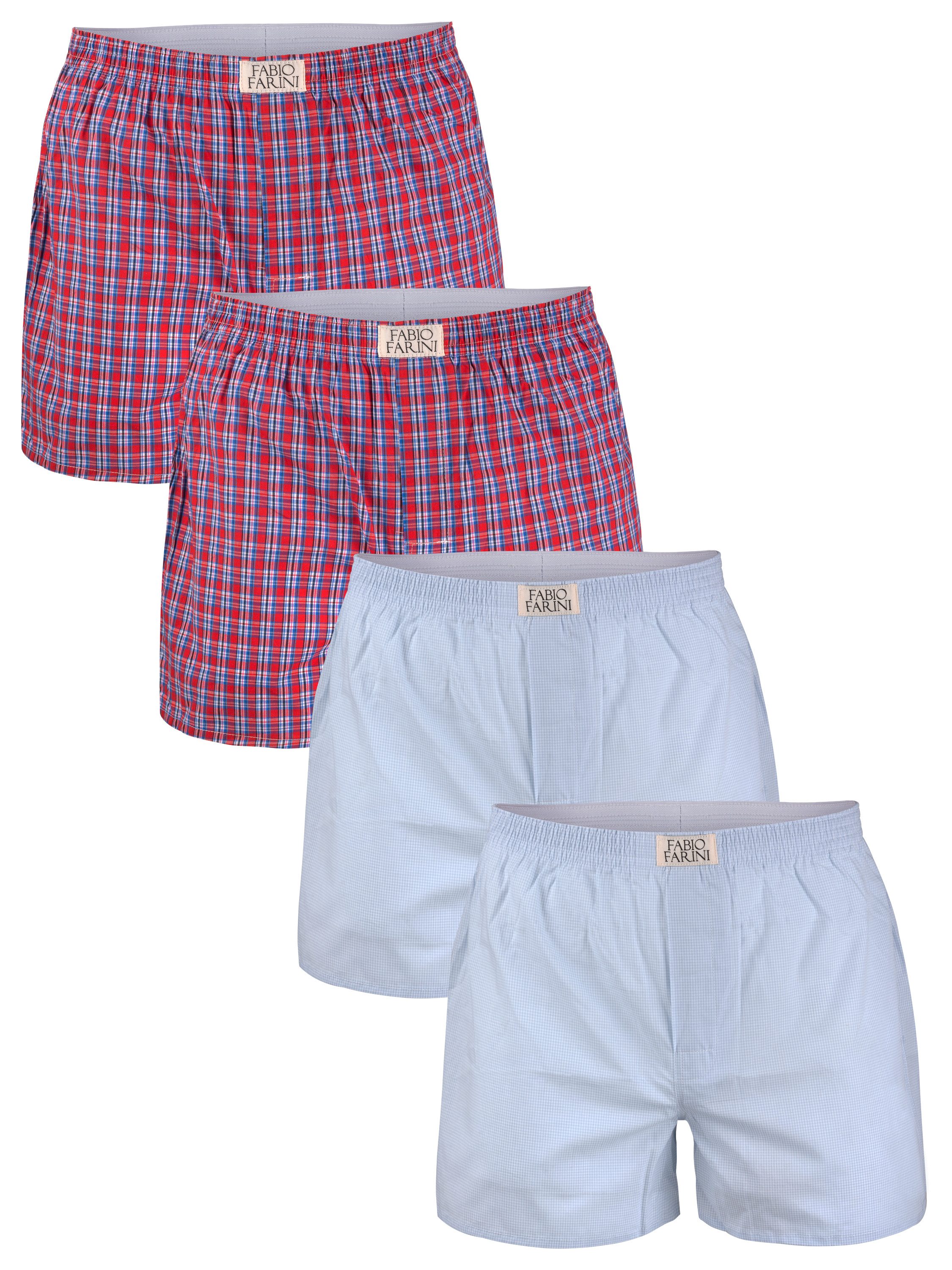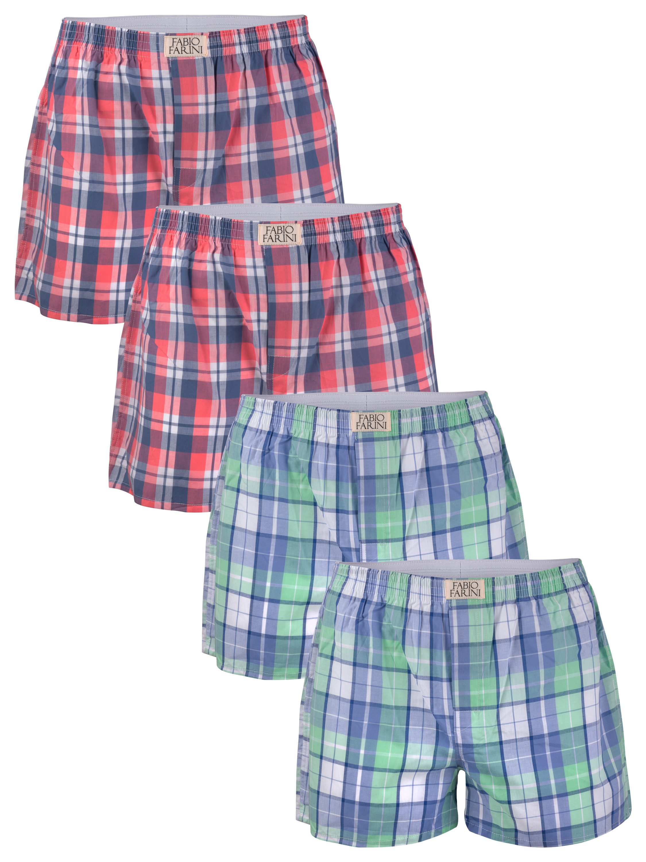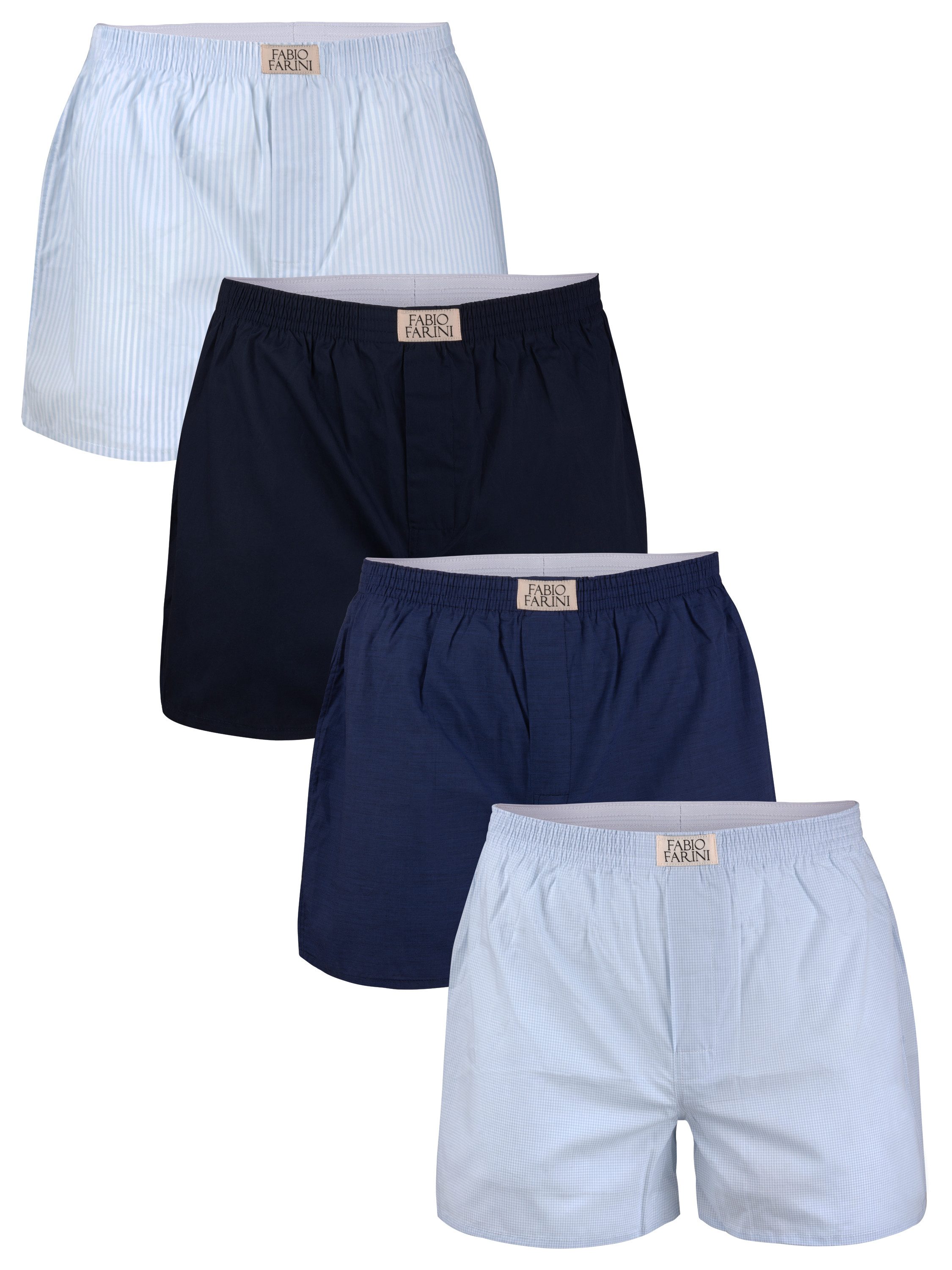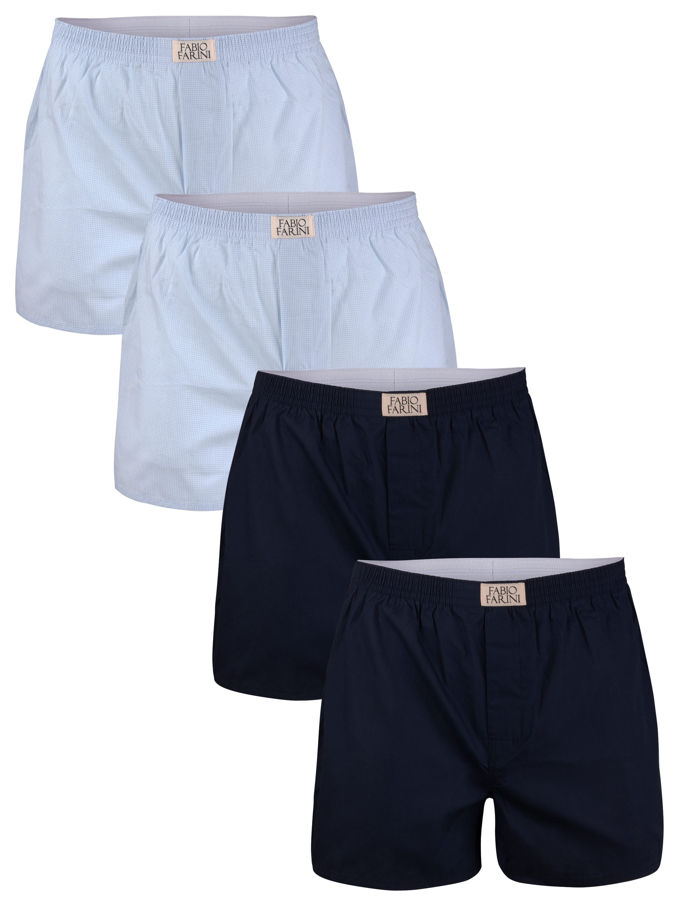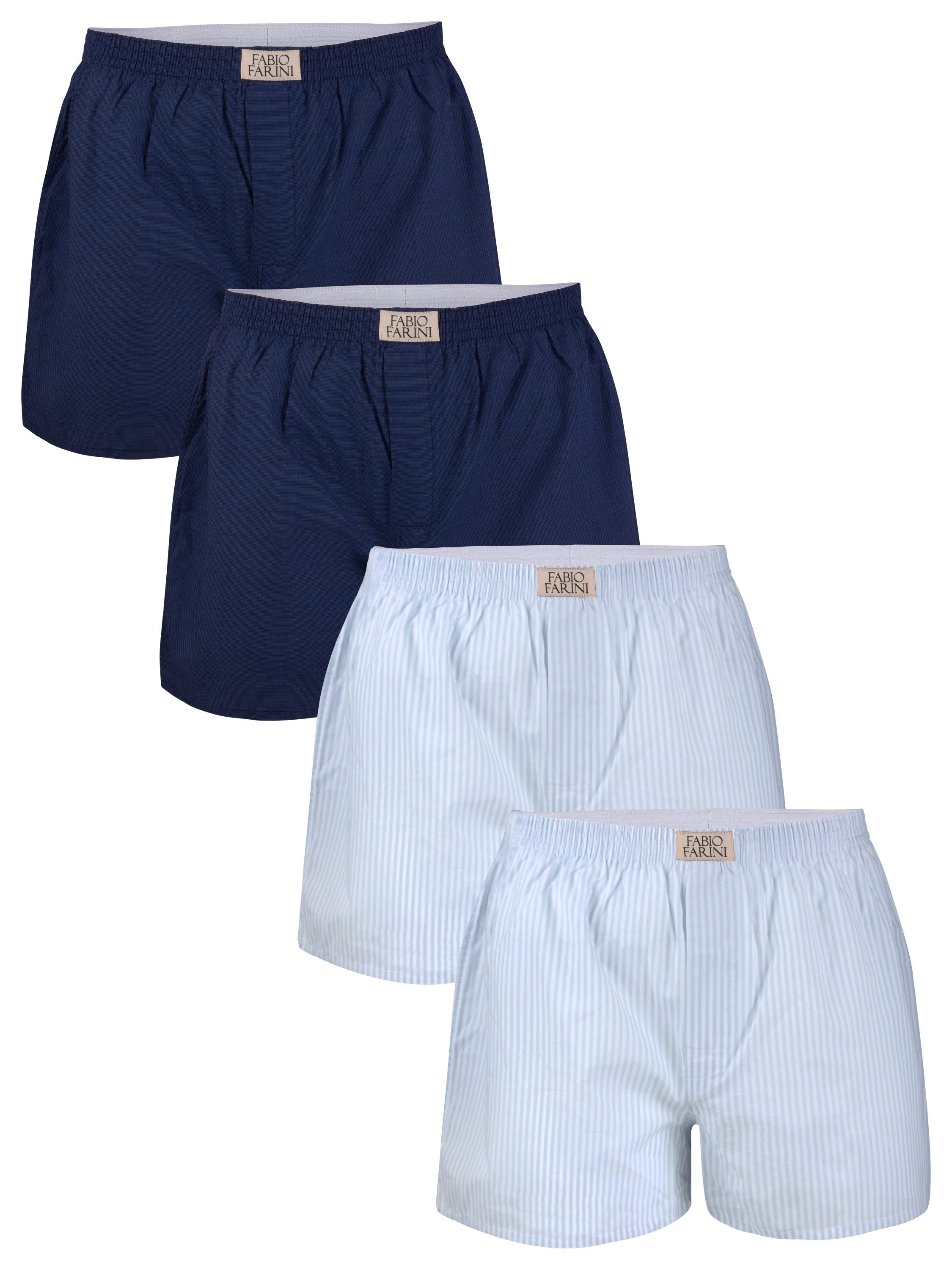 Gehören auch Sie zu den Männern, die sich vom klassischen Feinripp- oder Doppelripp-Slip verabschiedet haben? Dann liegen Sie voll im Trend: Jeder dritte Mann in Deutschland, so beschreibt es eine Studie, setzt inzwischen auf mehr Beinfreiheit und trägt Boxershorts. Kein Wunder bei der Auswahl an modischen Modellen! Hier wurden jeweils vier Boxer in verschiedenen Farben und Mustern zu einem praktischen Multi-Pack kombiniert. Всі verfügen über einen Eingriff mit verdeckter Knopfleiste und einen elastischen Taillenbund, der mittig das beliebte Fabio-Farini-Designerlabel trägt.