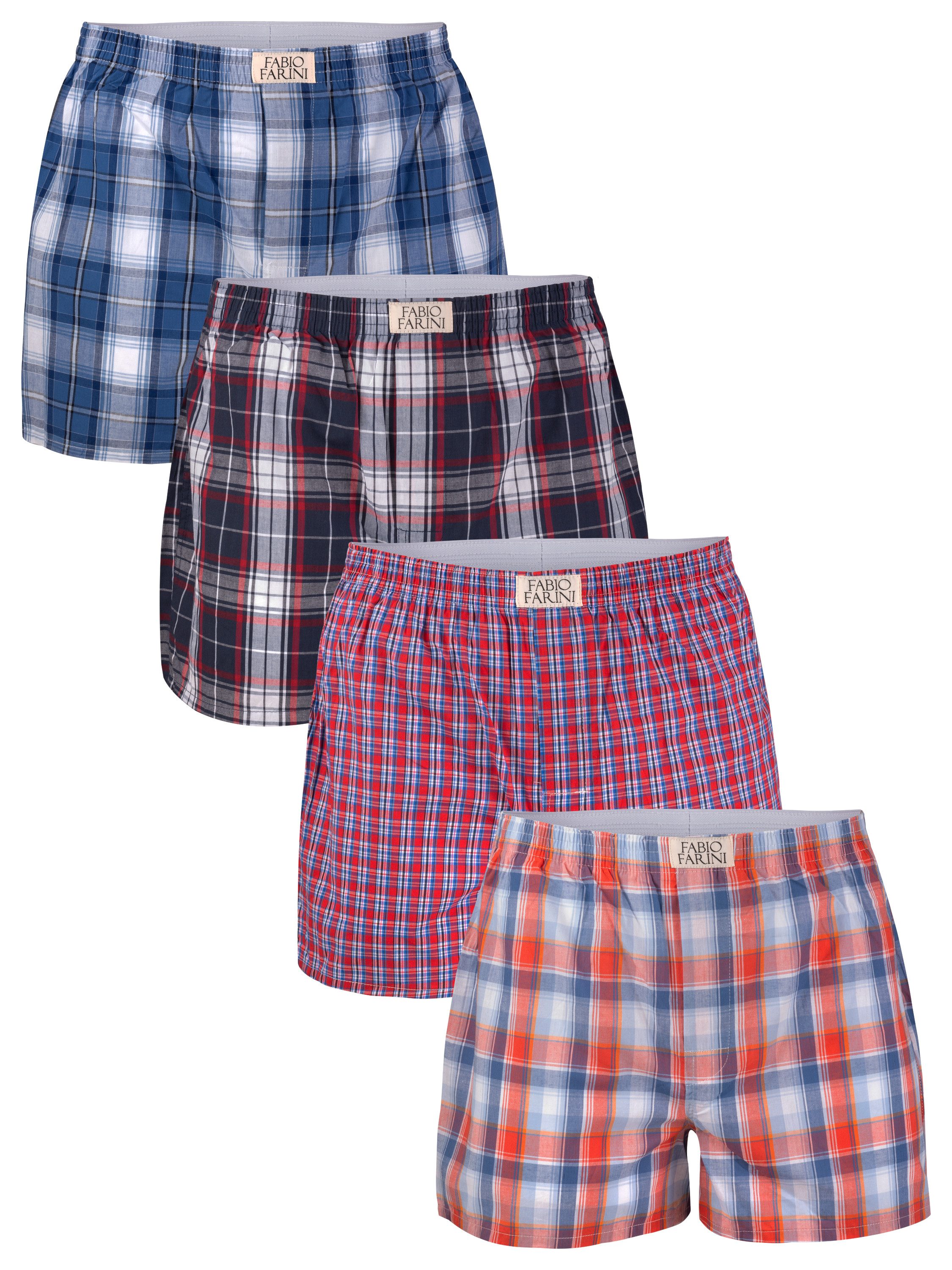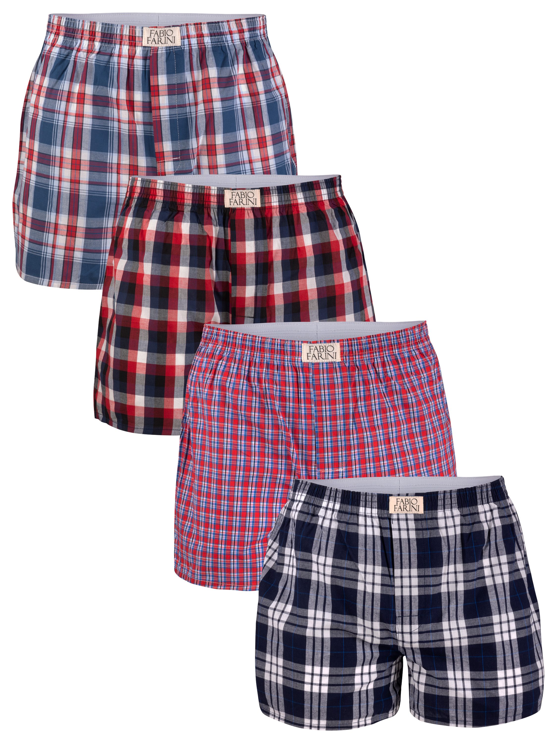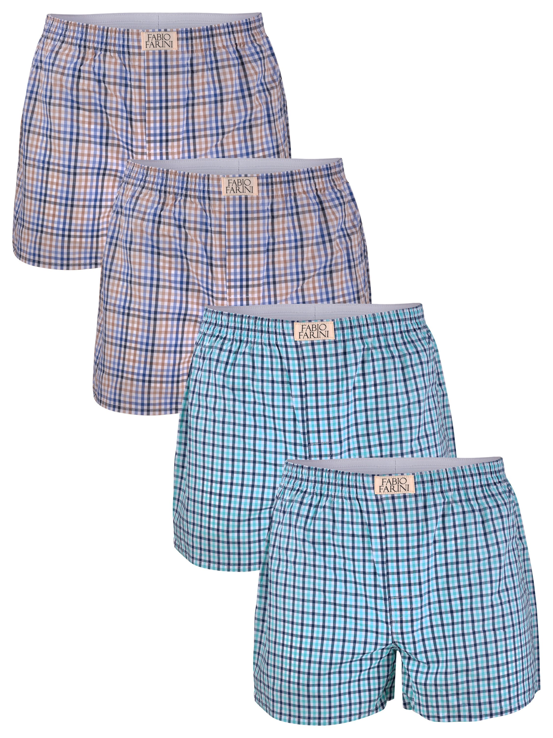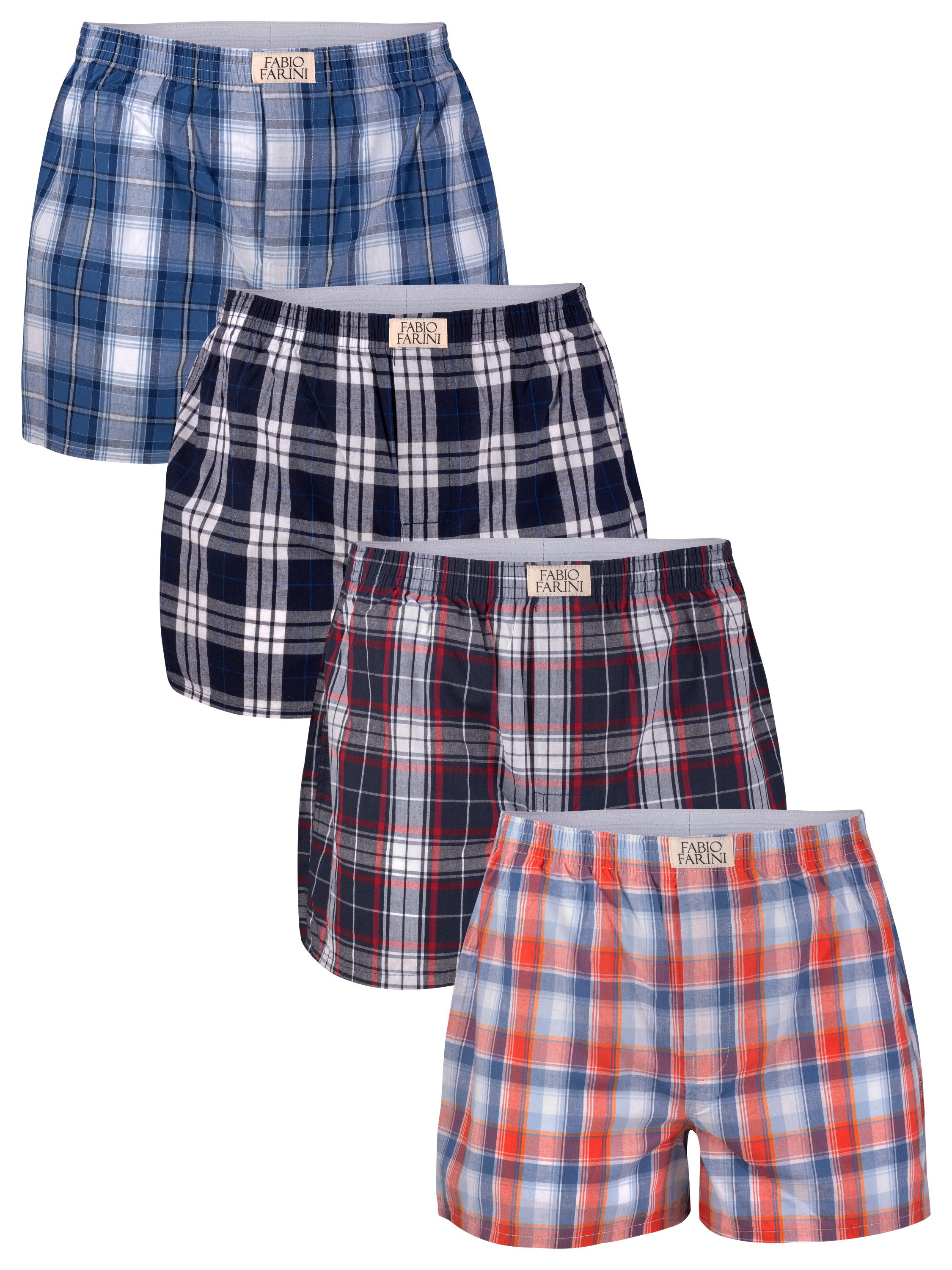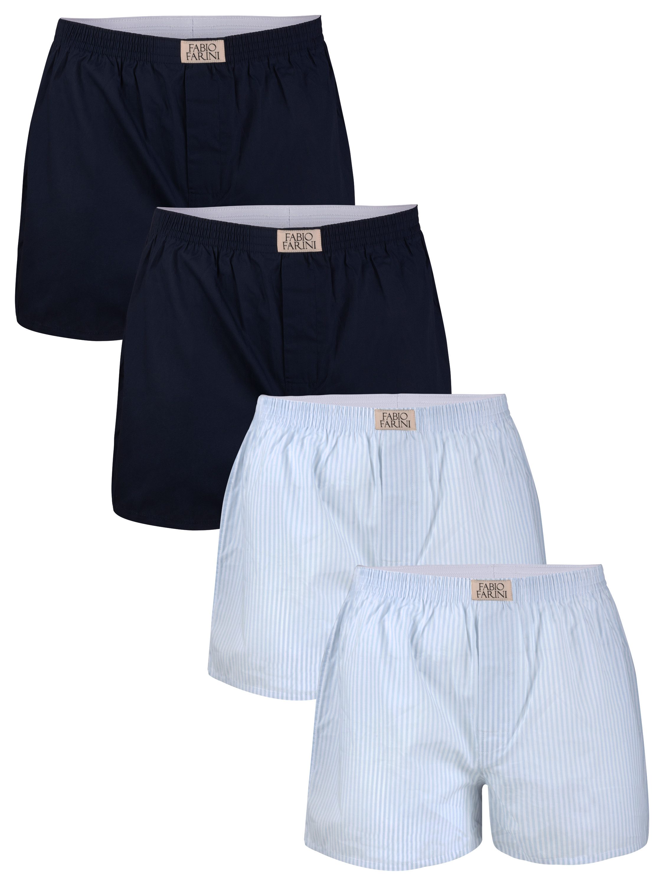Gehören auch Sie zu den Männern, die sich vom klassischen Feinripp- oder Doppelripp-Slip verabschiedet haben? Dann liegen Sie voll im Trend: Jeder dritte Mann in Deutschland, so beschreibt es eine Studie, setzt inzwischen auf mehr Beinfreiheit und trägt Boxershorts. Kein Wunder bei der Auswahl an modischen Modellen! Hier wurden jeweils vier Boxer in verschiedenen Farben und Mustern zu einem praktischen Multi-Pack kombiniert. Всі verfügen über einen Eingriff mit verdeckter Knopfleiste und einen elastischen Taillenbund, der mittig das beliebte Fabio-Farini-Designerlabel trägt.