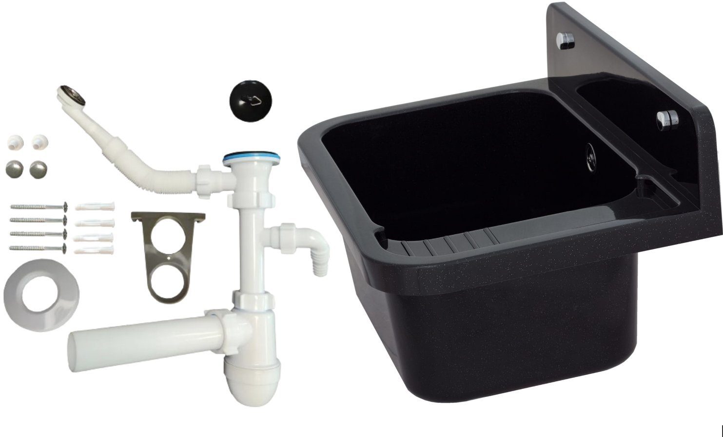 Ein industrielles, wandmontiertes, Waschbecken aus hochwertigem Polystyrol ist perfekt für Orte, an denen der Zugang zu Wasser den Arbeitskomfort verbessert und es Ihnen ermöglicht, die Sauberkeit zu wahren, wie z. B. Baustellen, renovierte Räume, Werkstätten, Garagen, Wäschereien Zimmer, Krankenzimmer oder Heizungsräume.