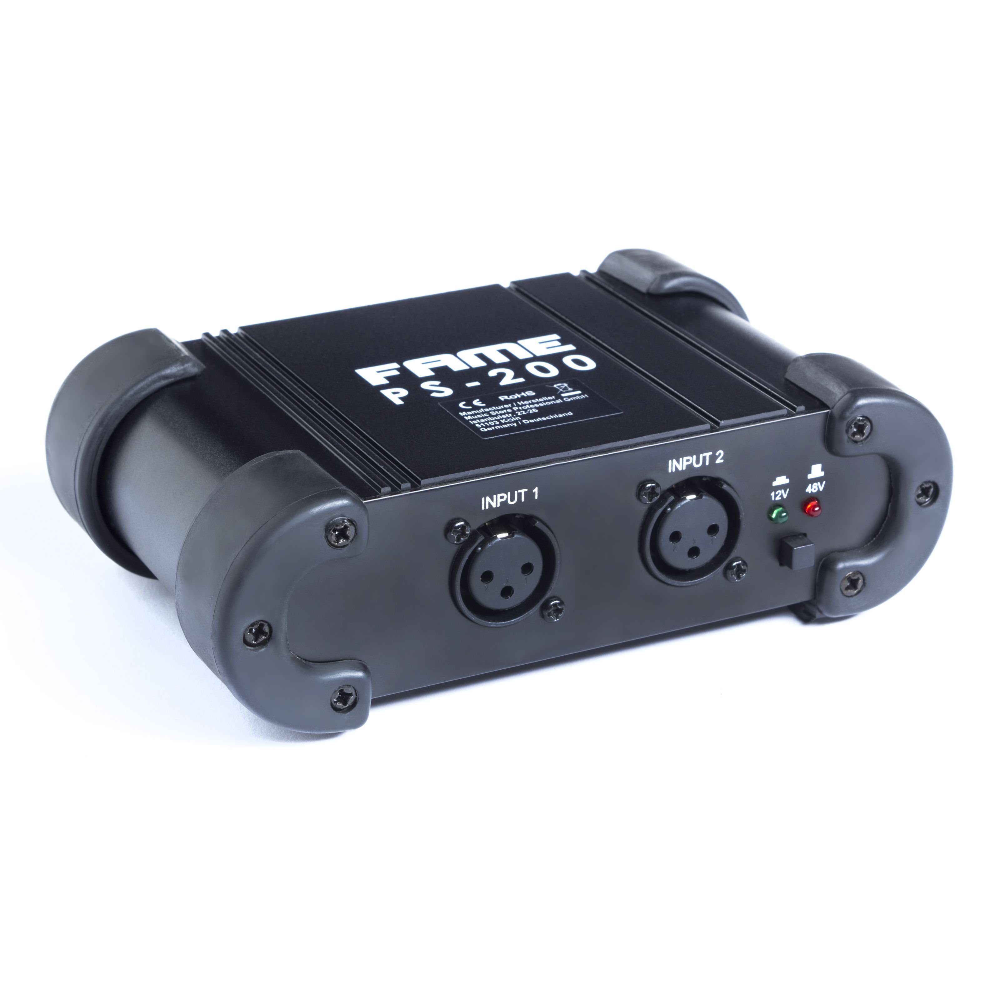 Lieferumfang | Fame PS-200: 2-Kanal Phantomspeisung, ideal für Studio- und Liveanwendungen. Wählbare Spannung: 12V oder 48V umschaltbar, passend für Mikrofonanforderungen. Robustes Design: Metallgehäuse in Schwarz für Langlebigkeit und Zuverlässigkeit. Inklusive Netzteil: 20VDC Netzteil im Lieferumfang, für sofortige Inbetriebnahme. Vielseitig einsetzbar: Ideal für Studioaufnahmen, Live-Performances und professionelle Audioanwendungen.