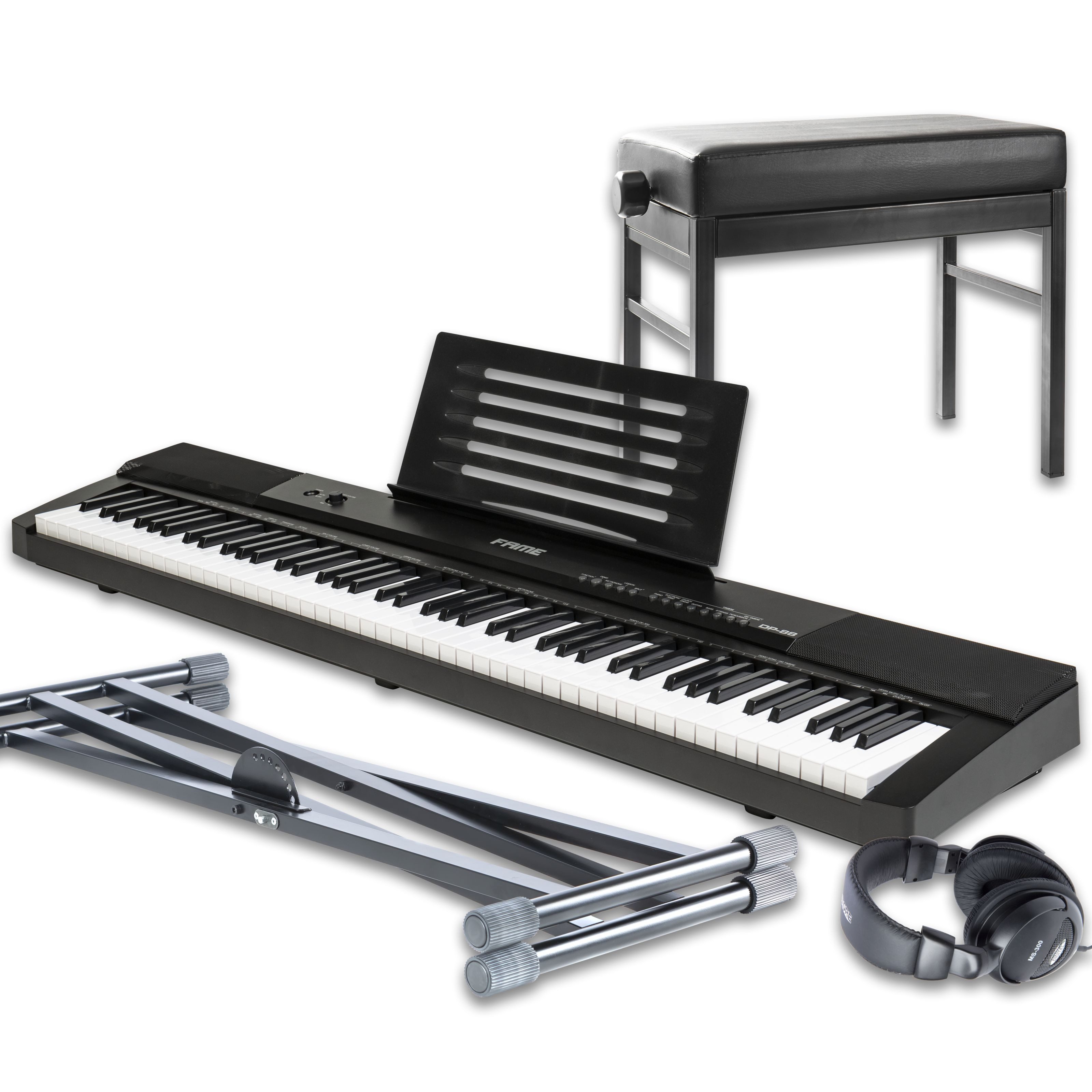 Lieferumfang | Fame DP-88 Stagepiano Set, 88 Tasten, leicht gewichtet, 140 Sounds, USB MIDI, integrierter Effektprozessor, inklusive Keyboardständer, Klavierbank, Kopfhörer, Ideal für Einsteiger und Fortgeschrittene. Fame DP-88 Stagepiano Set, 88 Tasten, leicht gewichtet, 140 Sounds, USB MIDI, integrierter Effektprozessor, inklusive Keyboardständer, Klavierbank, Kopfhörer, Ideal für Einsteiger und Fortgeschrittene. MS-ID: KEY017 Hersteller: Fame Bauform / Tastenanzahl: 88 Tastaturausführung: leicht gewichtet Anschlagdynamik: Ja Tonerzeugung: Digital Velocitykurve einstellbar: Ja Anzahl Drehregler: 1 USB MIDI Schnittstelle: Ja Kopfhöreranschluss: Ja Sustain Pedalanschluss: Ja Aufnahmemöglichkeit: MIDI-Linearsequenzer Lautsprecher: Ja LINE IN: Ja LINE OUT: Ja Pedal mitgeliefert: Ja integr. Effektprozessor: Ja Anzahl Sounds: 140 Polyphonie: 32 Keyboard Split: Ja Stromversorgung: Netzteil extern inkl. Netzteil: Ja Gewicht (kg): 9 Gewicht Range (kg): 7,5 - 10 Breite (cm): 127.6 Höhe (cm): 8.2 Tiefe (cm): 27.3 |