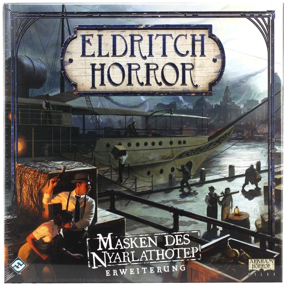 Eldritch Horror: Masken des Nyarlathotep ist eine Erweiterung für Eldritch Horror. Neu sind vor allem persönliche Geschichten, die für jeden Charakter einzigartig sind, und eine eigene Kampagne mit ganz neuen Herausforderungen.