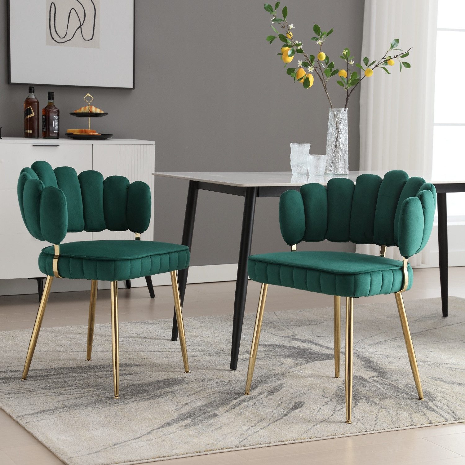 Hochwertiger Samtstoff sorgt für angenehme Weichheit Hochwertiger Stoff, gute Atmungsaktivität, weich und hautfreundlich. Dieser Stuhl ist vollständig aus Samtstoff gefertigt, mit einer bequemen Rückenlehne und Sitzkissen, bietet einen angenehmen Platz zum Verweilen in Ihrer Freizeit.