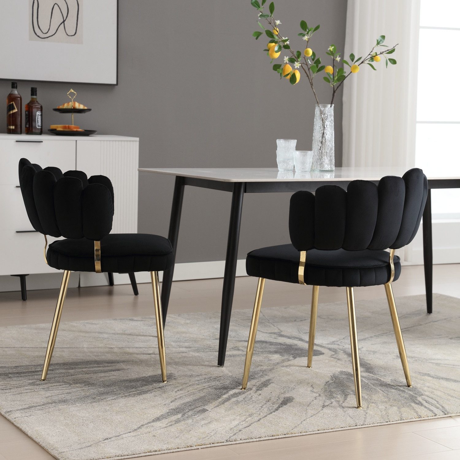 Der Metallrahmen ist schwarz lackiert, was den dezenten Luxus unterstreicht, und passt perfekt zum Samtmaterial, um die Gesamtstruktur zu verbessern.