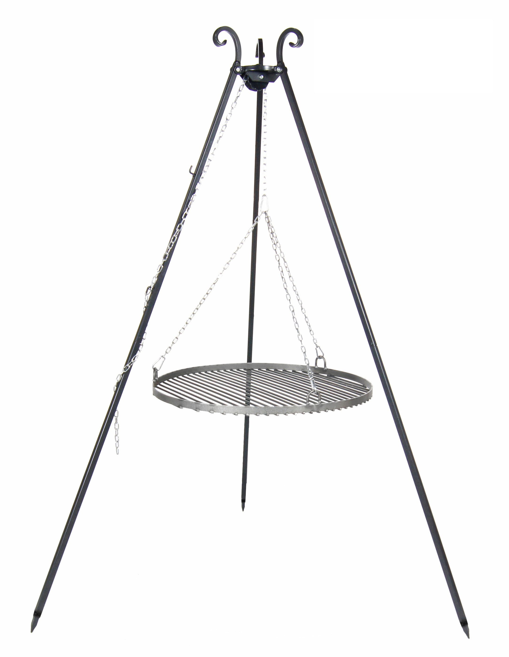 Im Lieferumfang sind ein Dreibein, eine Kette und ein Grillrost enthalten.