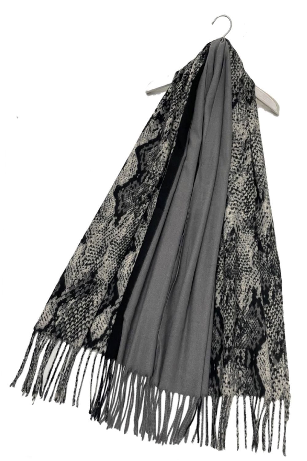 Dieser stilvolle Schal vereint elegantes Design mit kuscheligem Komfort. Das raffinierte Streifenmuster in Schlangenleder-Optik verleiht ihm eine moderne und edle Note. Die hochwertige Materialmischung aus 30 % Wolle und 70 % Polyacryl sorgt für ein angenehm weiches Tragegefühl und wohlige Wärme. Mit einer Розмір von ca. 70 × 180 cm lässt sich der Schal vielseitig tragen – als modisches Accessoire über dem Mantel, gemütlich um die Schultern gelegt oder locker um den Hals geschlungen. Die dekorativen Quasten an den Enden runden den Look harmonisch ab. Ein perfekter Begleiter für die Herbst- und Wintermonate, der Stil und Gemütlichkeit vereint.