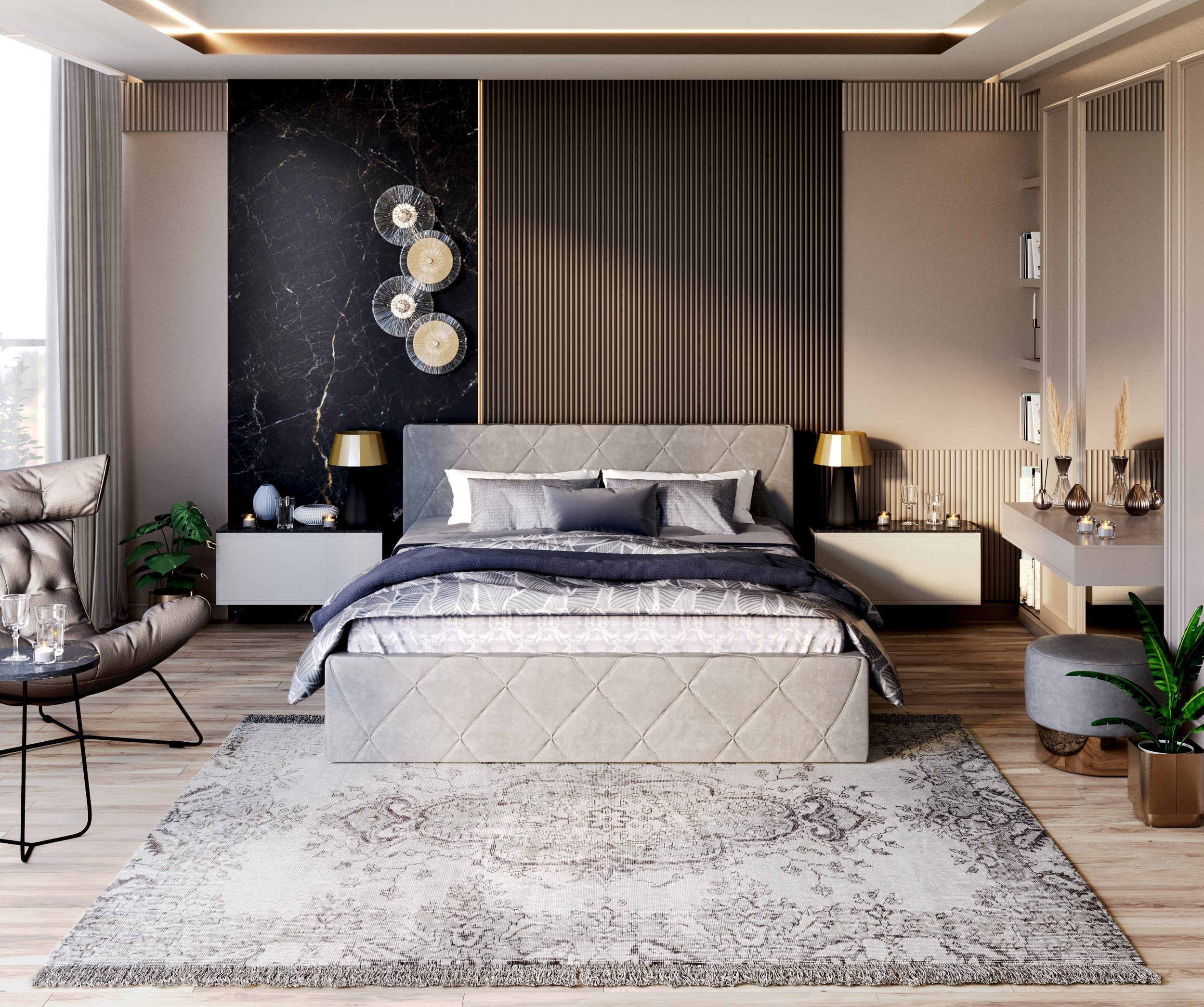 Das Polsterbett CARO – TRINITY bietet eine gelungene Kombination aus Komfort, Stil und Funktionalität. Mit seinem zeitlosen Design, der hochwertigen Verarbeitung und einem praktischen Bettkasten fügt sich dieses Bett perfekt in jedes Schlafzimmer ein. Der Bezugstoff TRINITY aus 100% Polyester verleiht dem Bett eine samtige Optik und Haptik und ist besonders widerstandsfähig gegenüber Abrieb und Sonnenlicht. Das Bett ist außerdem mit einem großen Bettkasten ausgestattet, der ausreichend Stauraum für Bettzeug und andere Dinge bietet, die leicht erreichbar und gut geschützt untergebracht werden sollen.