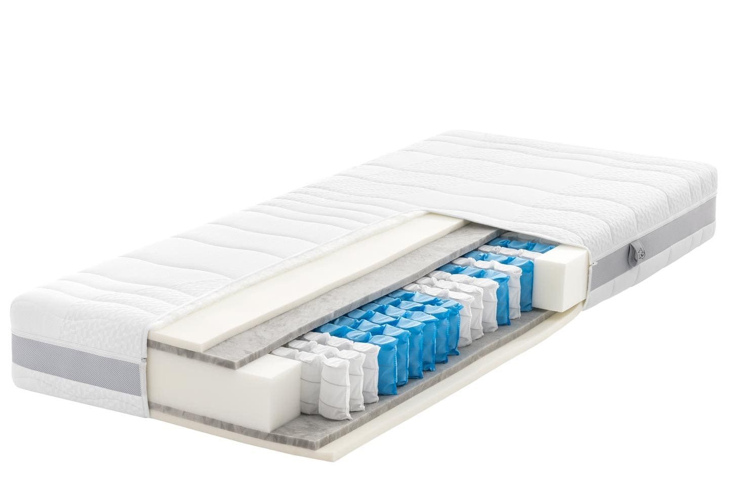 Top-Features | 7-Zonen Taschenfederkernmatratze, mit AIR-Latex- und Hybrid-Kaltschaum-Auflage, waschbarer Bezug mit 4-seitigem Reißverschluss, hohe Punktelastizität |