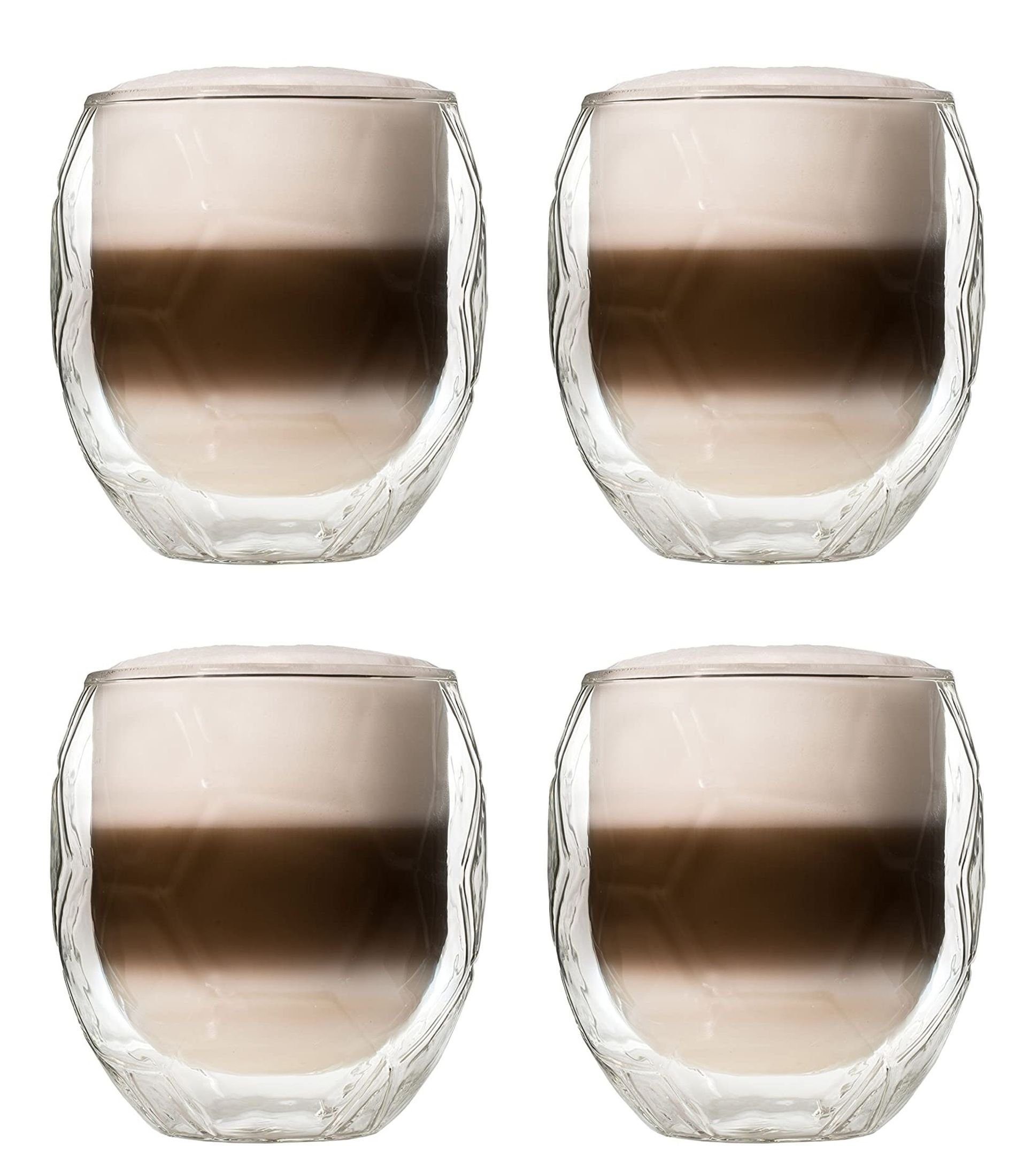 Diese edlen Thermogläser mit Fußballmuster auf der Glas-Außenseite sind aus doppelwandigem Borosilikatglas in Handarbeit gefertigt.