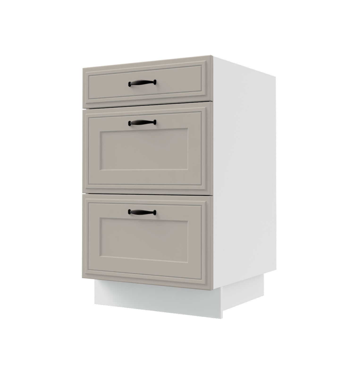Schubladenunterschrank / Hettich Vollauszug / Soft-Close-Funktion / mehrstufig abgesetzte 3D Kassettenfronten / dezente matte Frontfarben