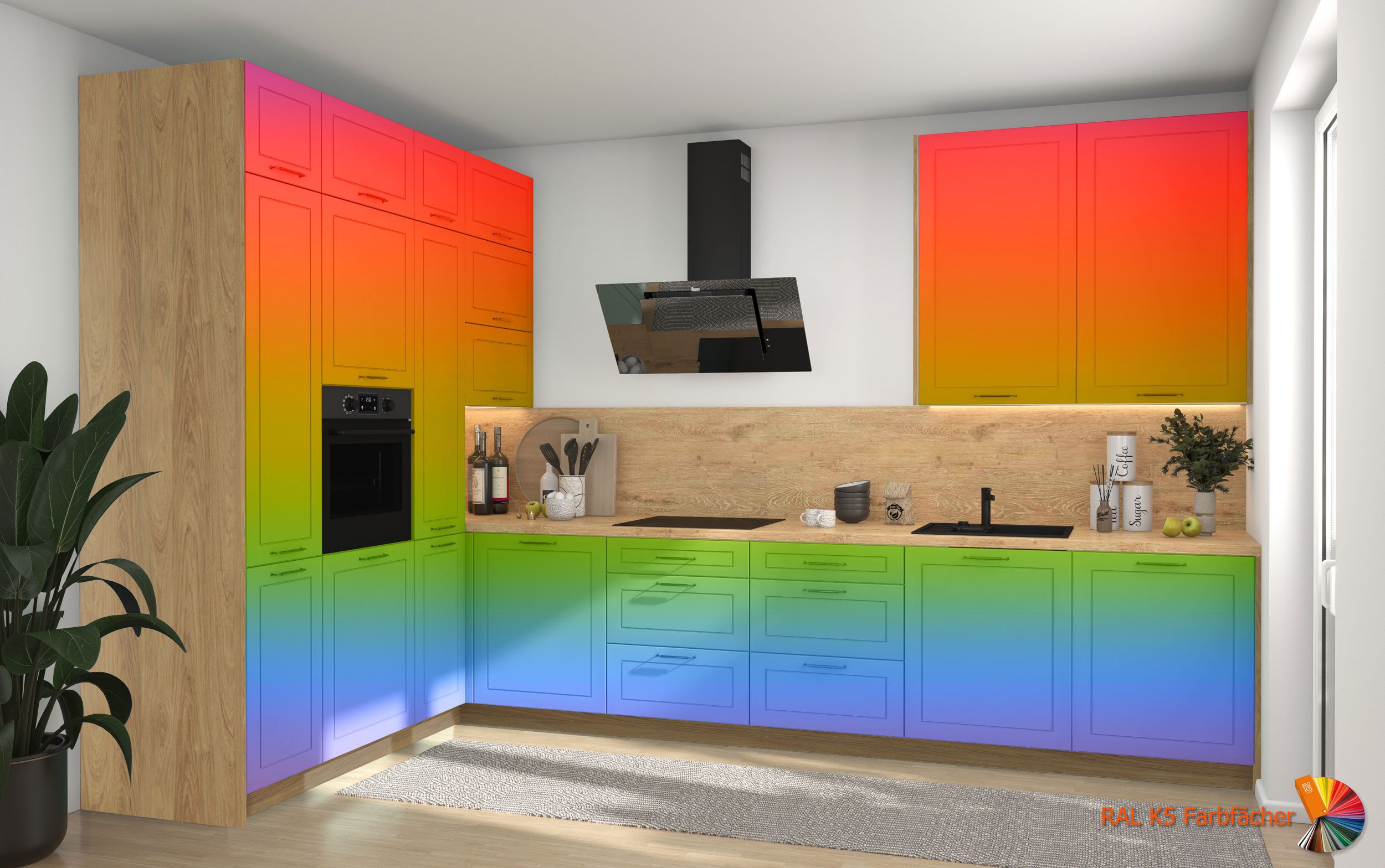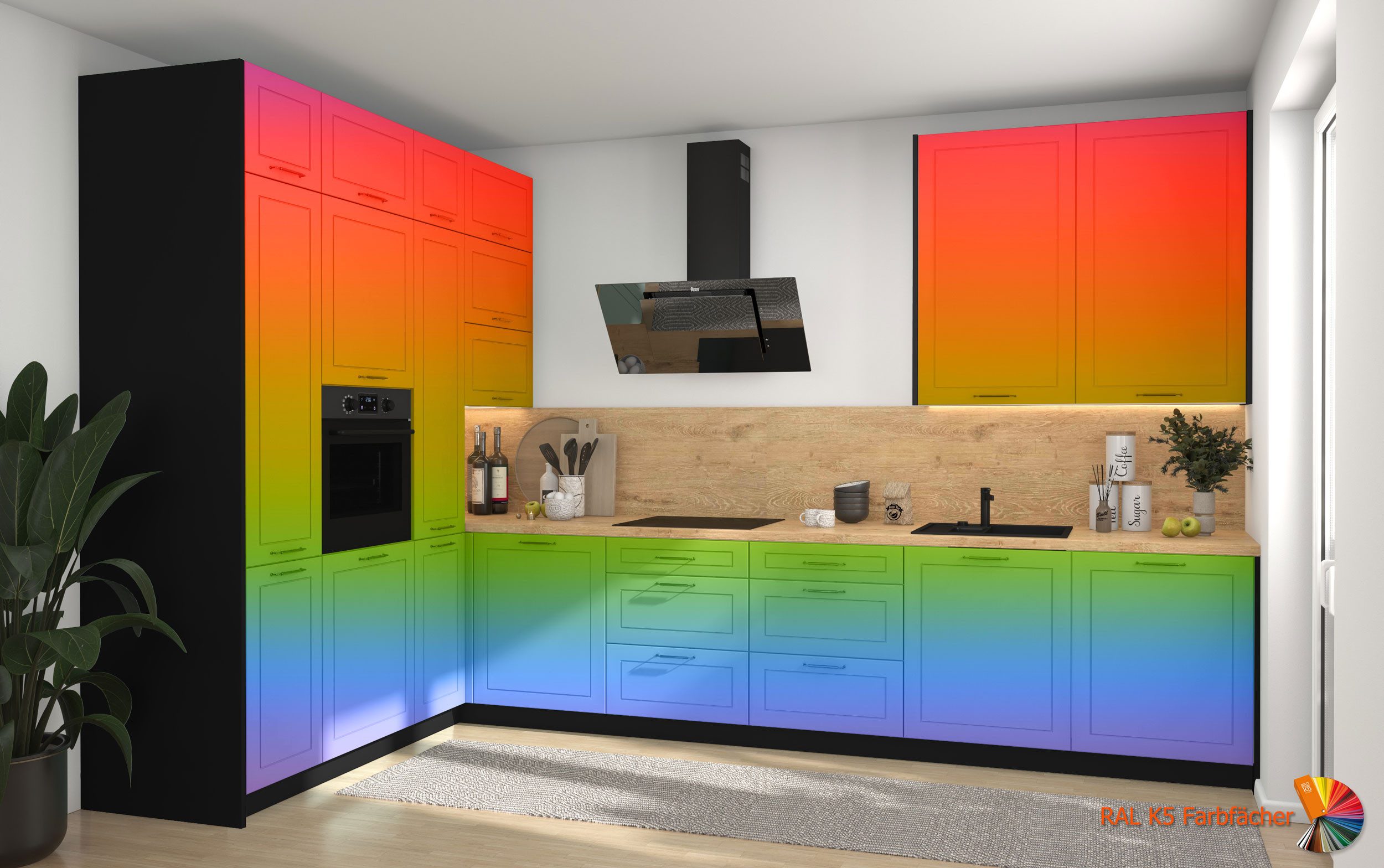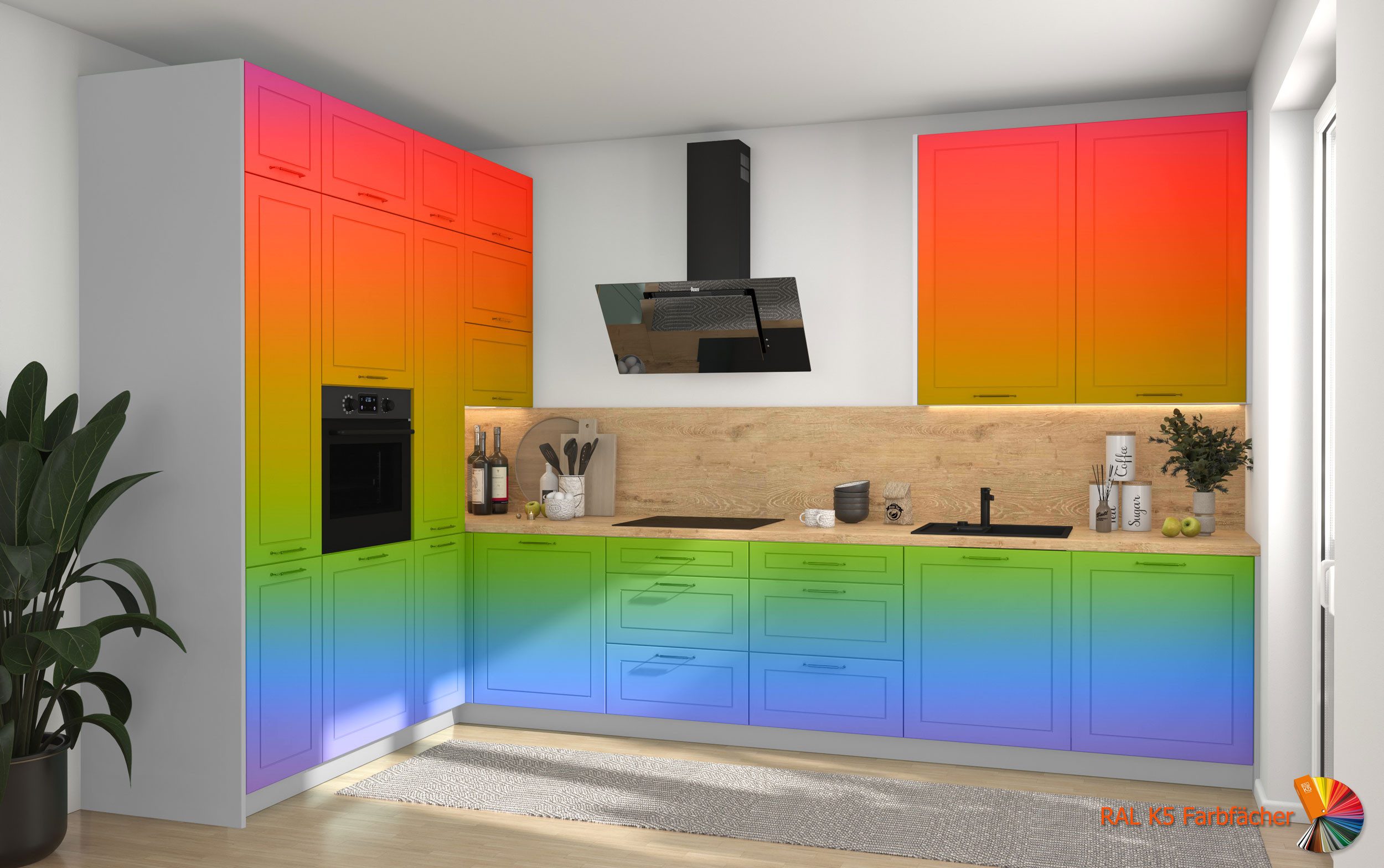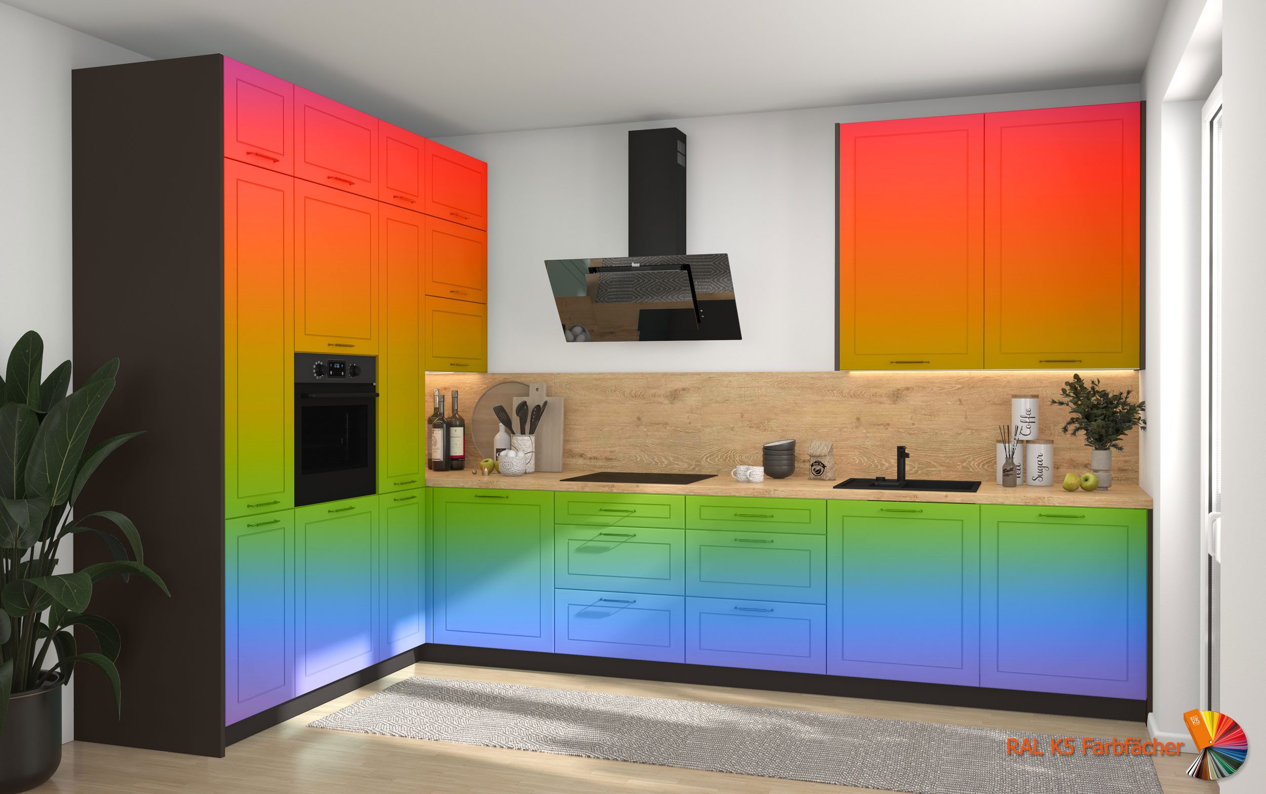 * Falls Sie diese Küchenzeile in einer anderen RAL Farbe (auf Grundlage des K5 (matt) - Farbfächers) haben möchten, kein Problem. Wir schicken Ihnen gern gegen eine Kaution den Farbfächer zu und Sie können entscheiden, welche Frontfarbe Sie für Ihre Küchenzeile auswählen möchten.