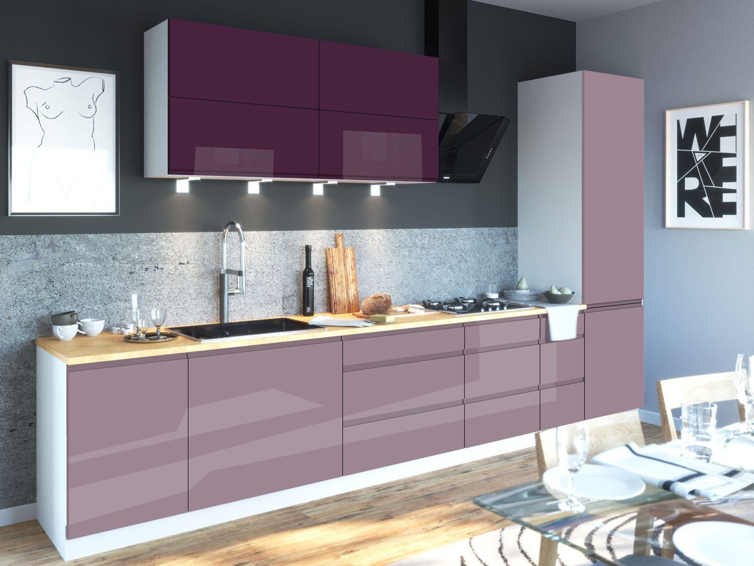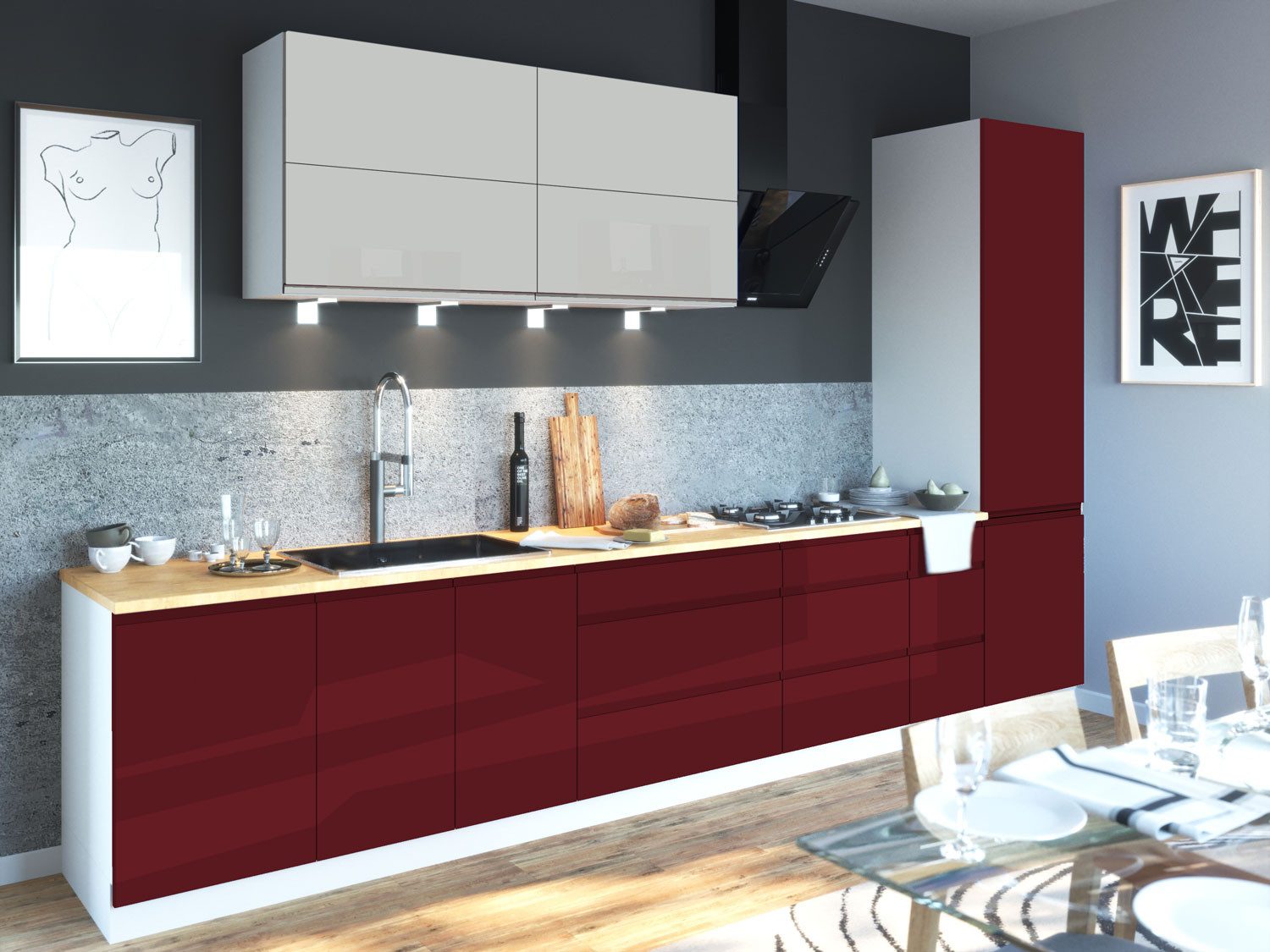 Das besondere Merkmal dieser hochwertigen Küchenzeile der Serie Florence bilden die Hochglanz lackierten Fronten.