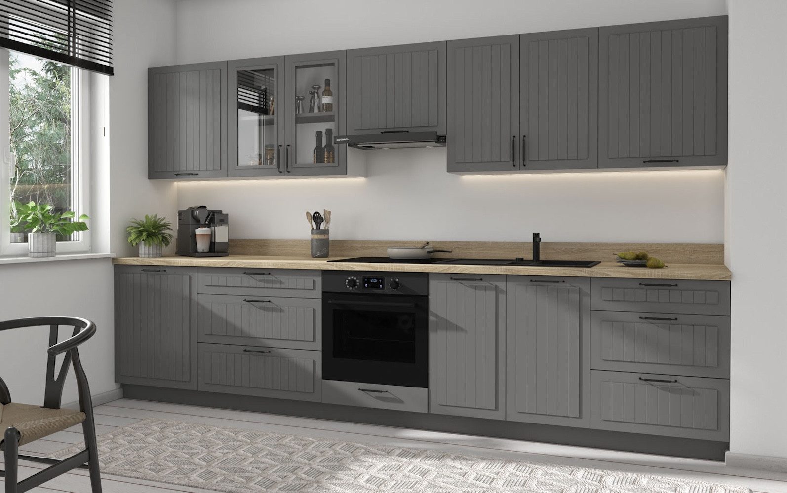 10-teilig / REJS Vollauszug / inkl. Arbeitsplatte / Soft-Close-Funktion / mediterrane Leisten-Optik / Fronten matt lackiert
