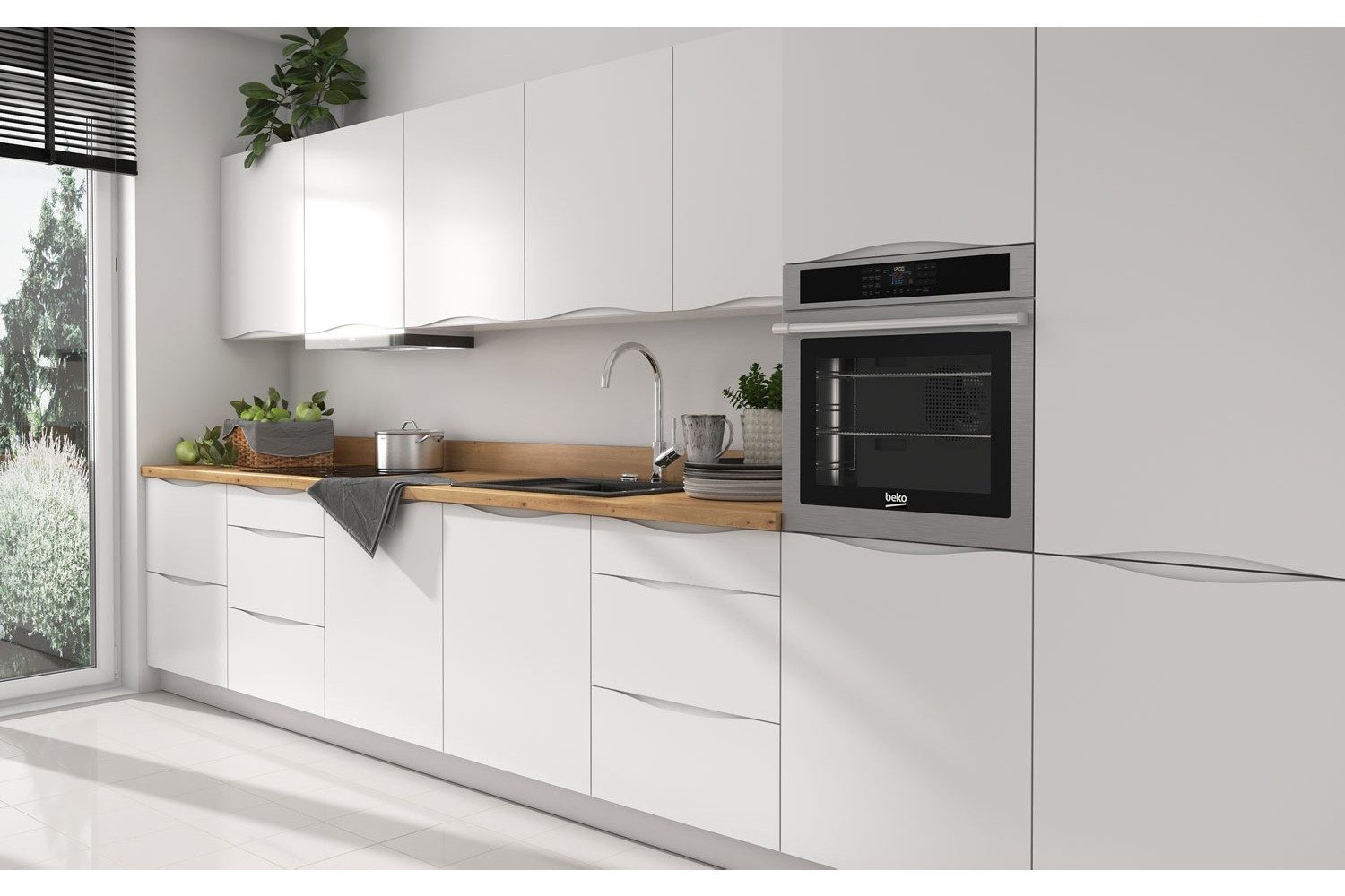 Das besondere Merkmal dieser Küchenserie bilden die Küchenfronten mit formschön geschwungen Griffmulden.