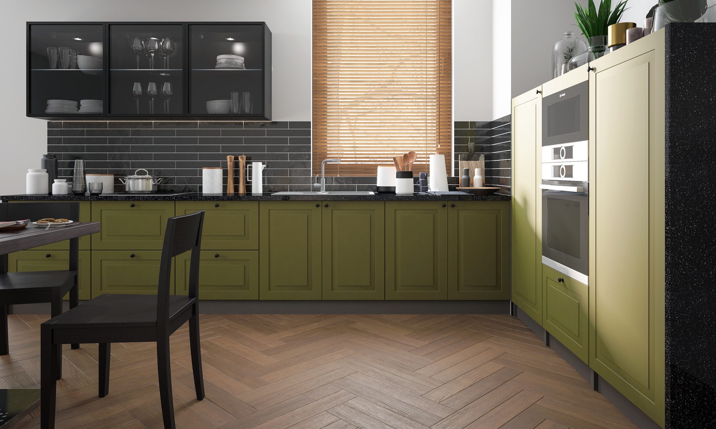 Schaffen Sie sich ein behagliches Küchenambiente mit dieser modernen Küchenzeile.