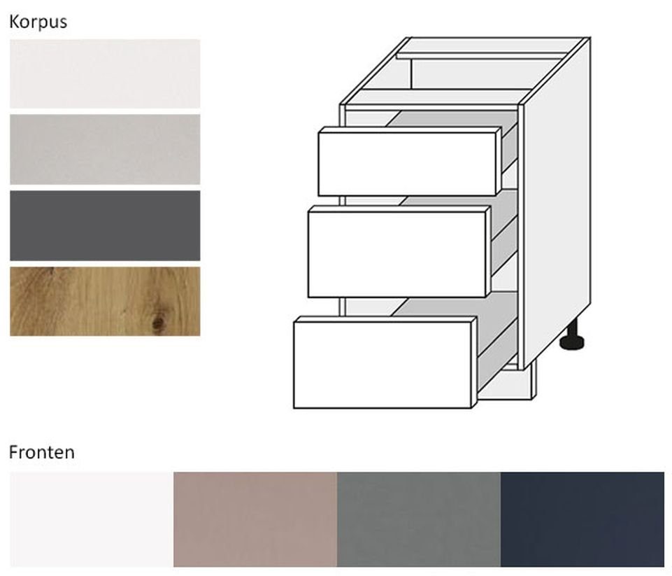 - 3 Schubladen mit Teilauszug (Airtic-System)