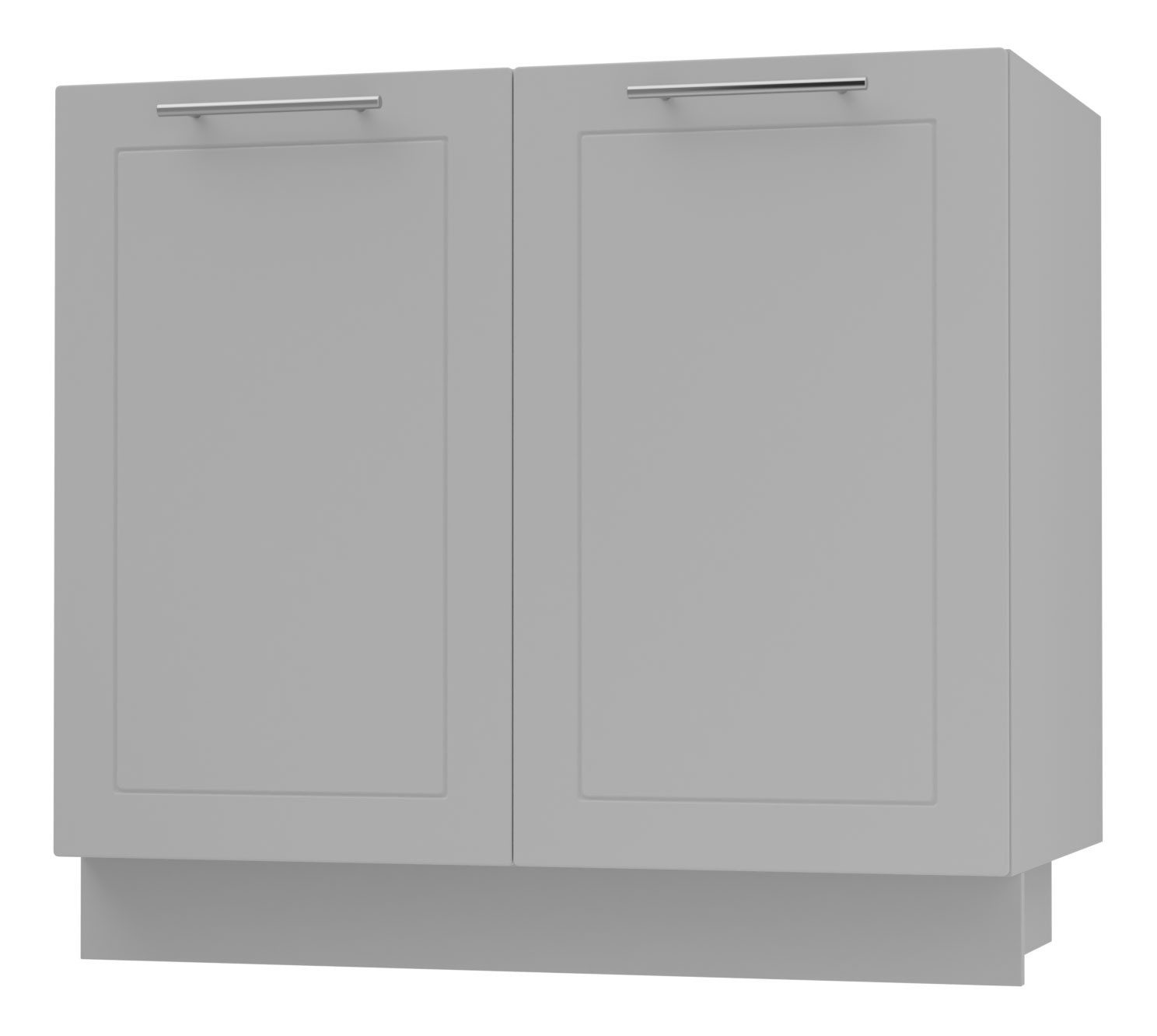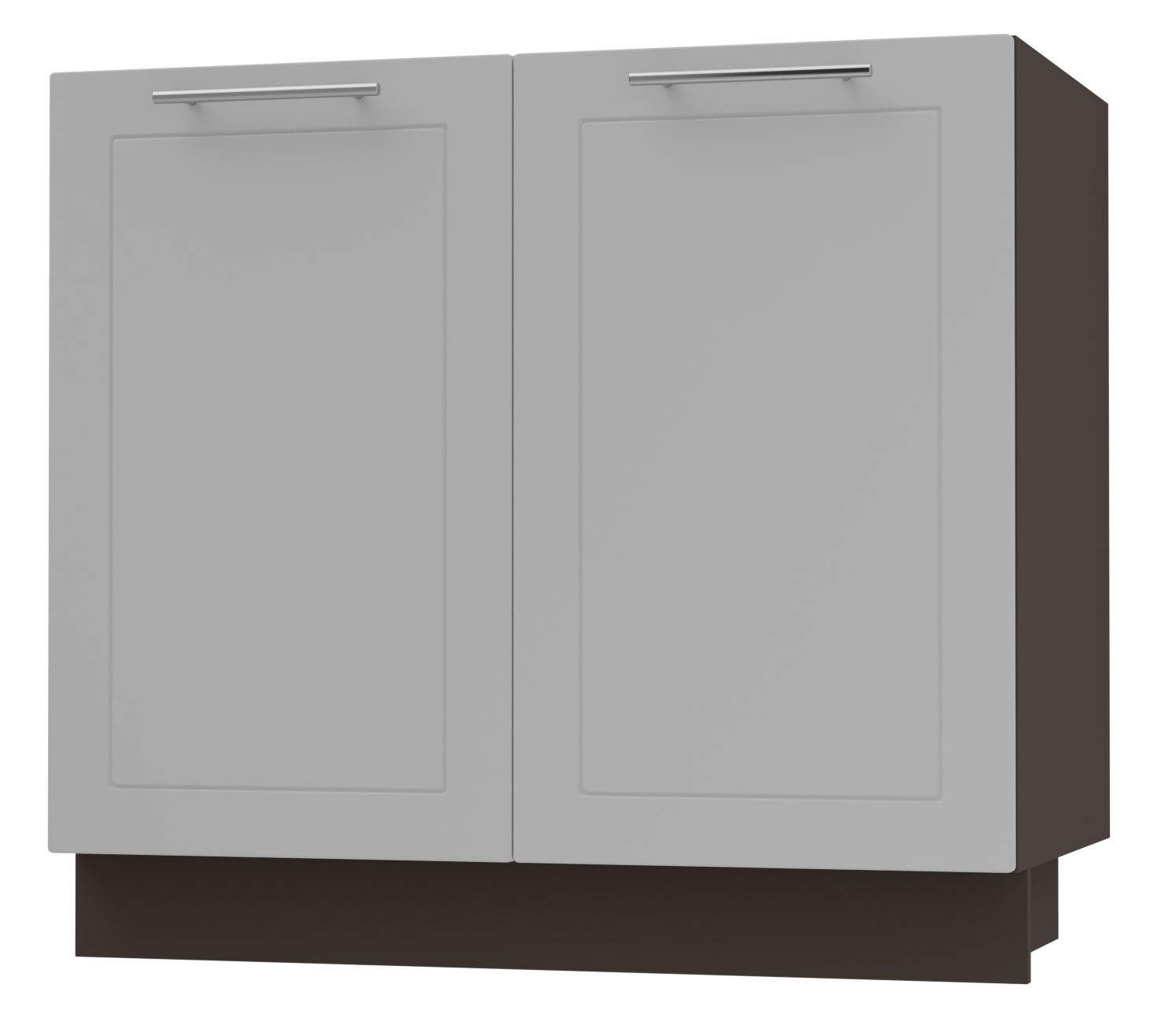 Der Schrank ist mit farbig passender Sockelleiste (Korpusfarbe) und regulierbaren Füßen ausgestattet.