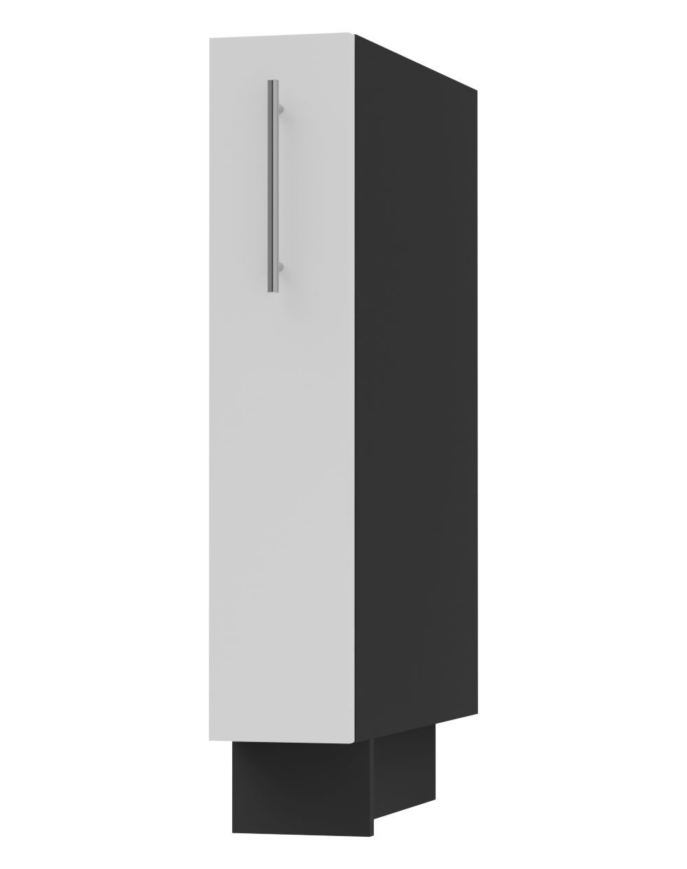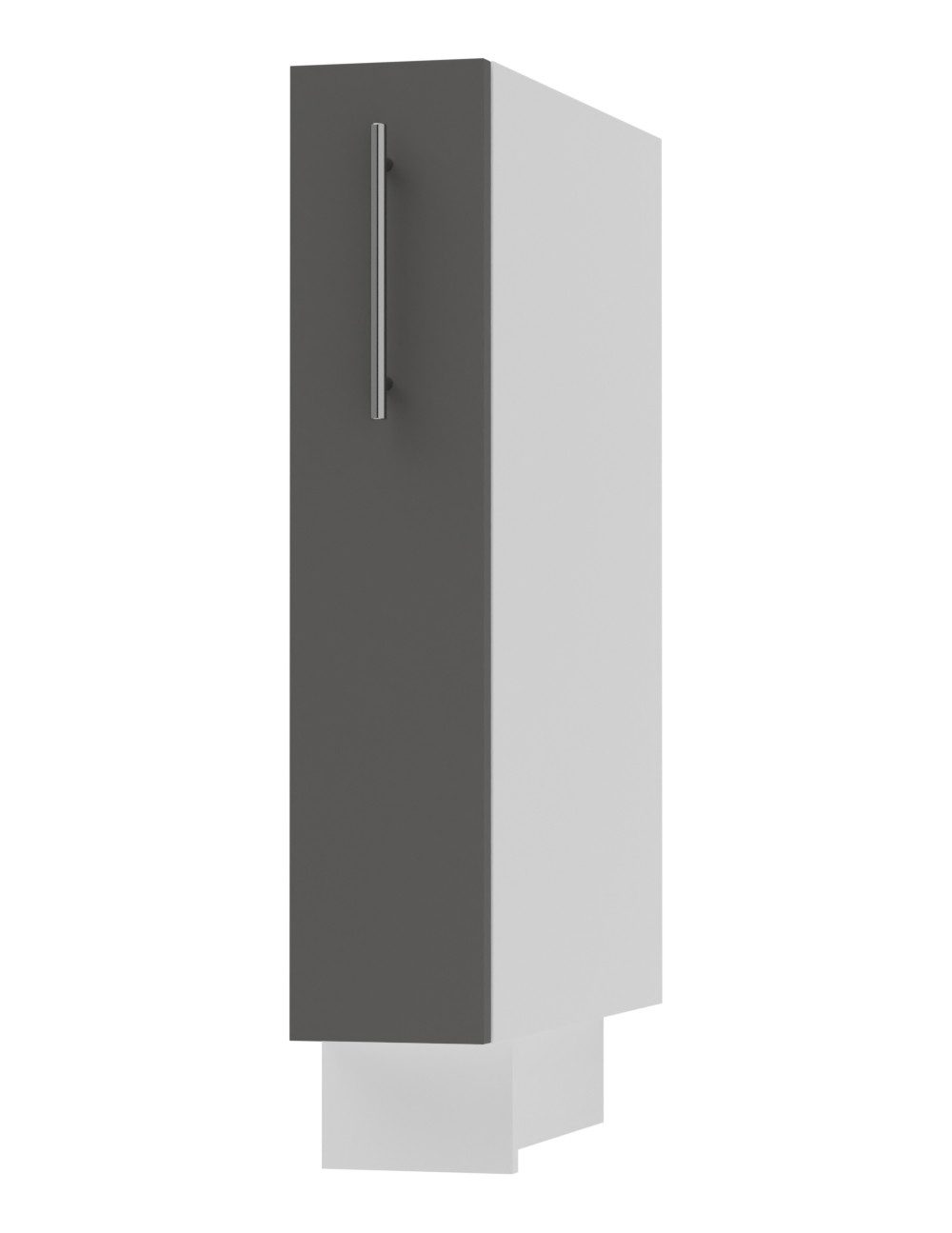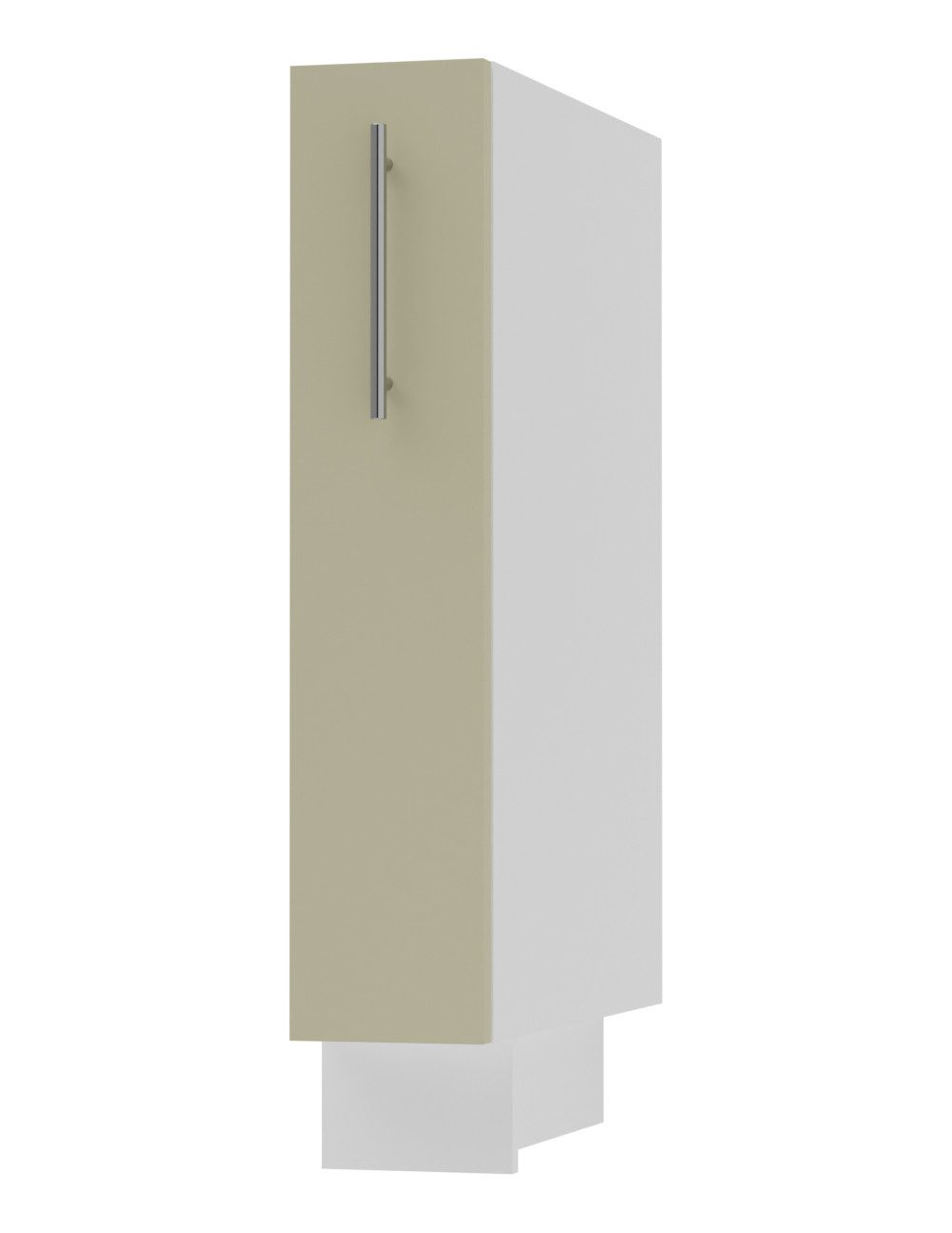 Der Schrank ist mit farbig passender Sockelleiste (Korpusfarbe) und regulierbaren Füßen ausgestattet.